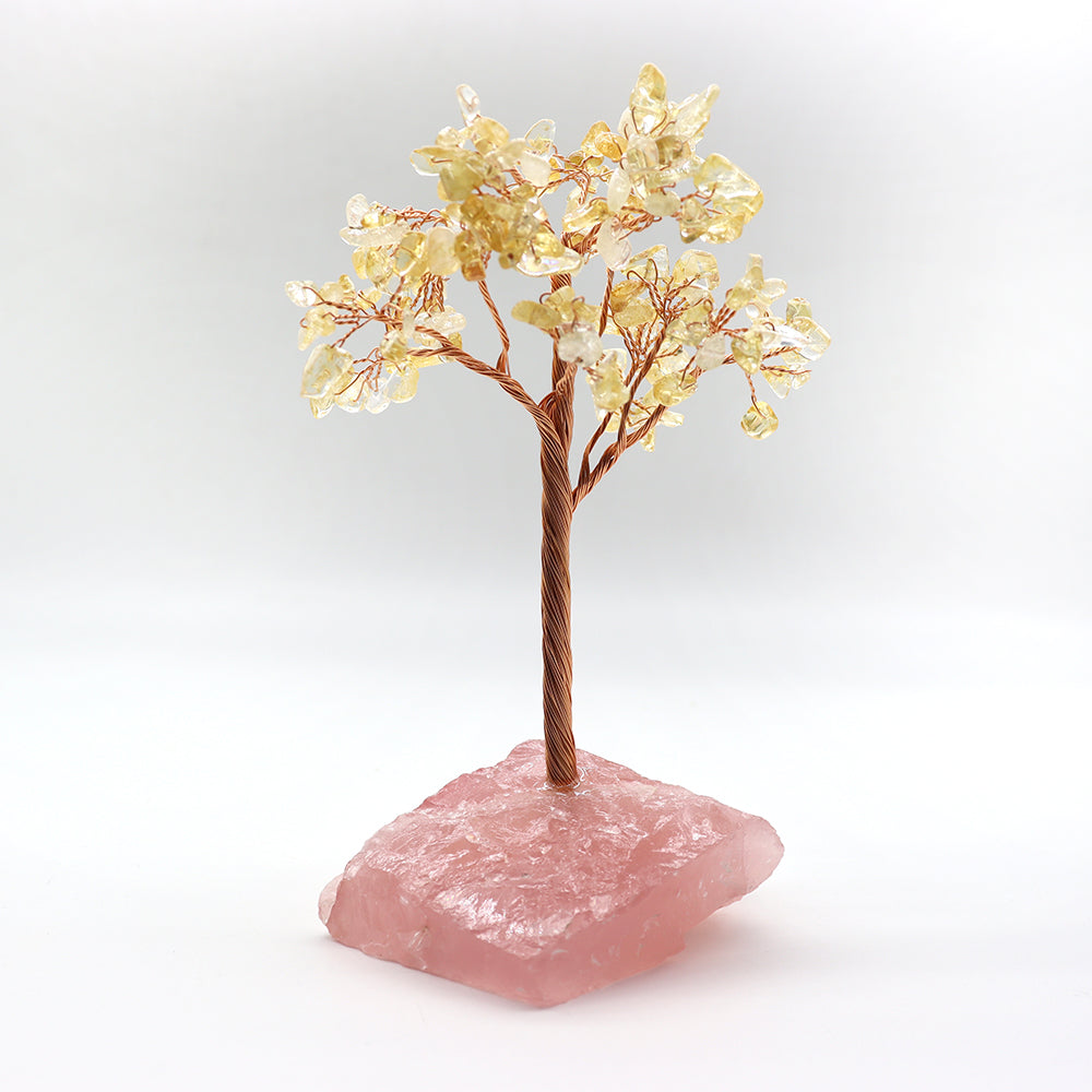 Our crystal trees combine natural chips from amethyst, rose quartz, citrine, and aventurine, each promoting unique energies. Amethyst encourages calm and intuition, rose quartz supports love and harmony, citrine brings abundance and positivity, while aventurine fosters healing and luck. Displaying these trees can enhance your home's energy balance and spiritual ambiance.