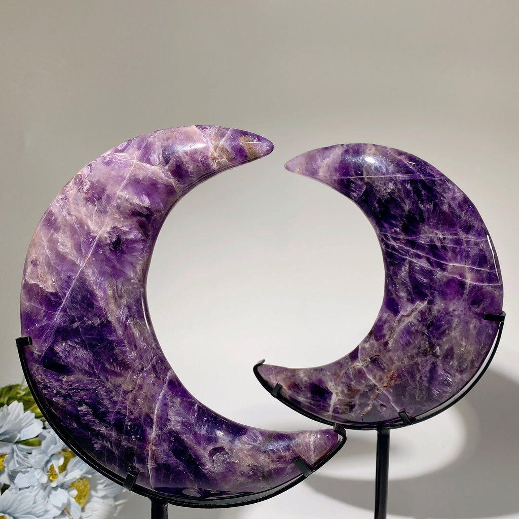 16cm Amethyst Moon Healing Crystal Sculpture for Decor