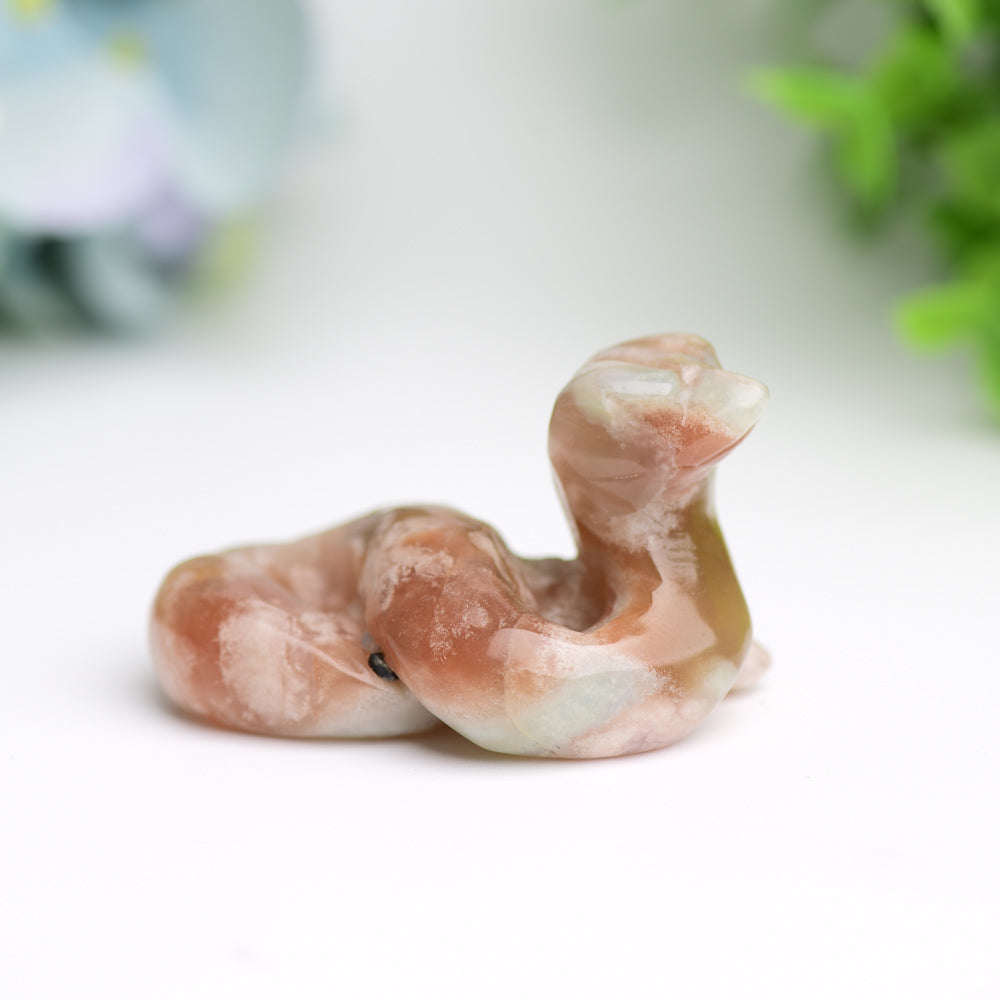 Our crystal snake carvings are hand-carved from natural stones like Tiger Eye, Labradorite, and Rose Quartz. Each stone provides unique healing benefits such as protection, intuition enhancement, and emotional balance.