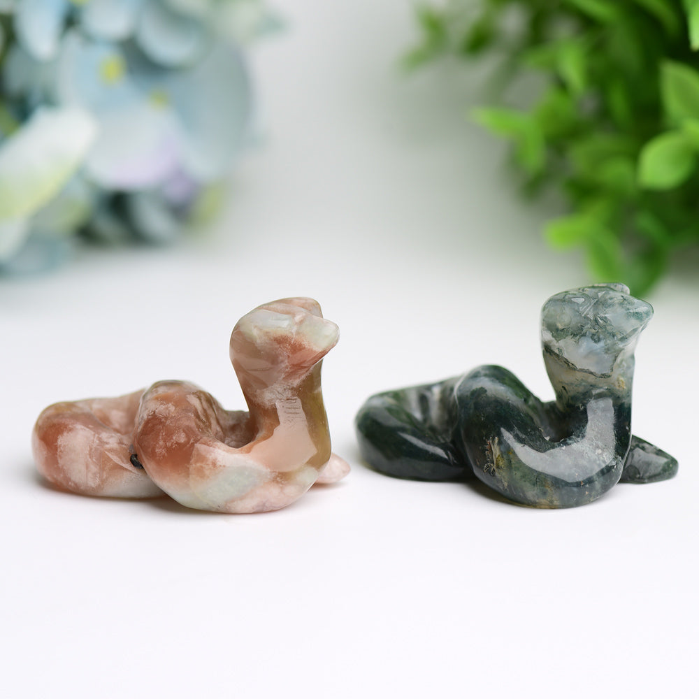 Each crystal snake carving measures approximately 2.2 inches (approx. 5.6 cm) in length and weighs around 40 grams (approx. 1.4 ounces), making them perfect for display or meditation.