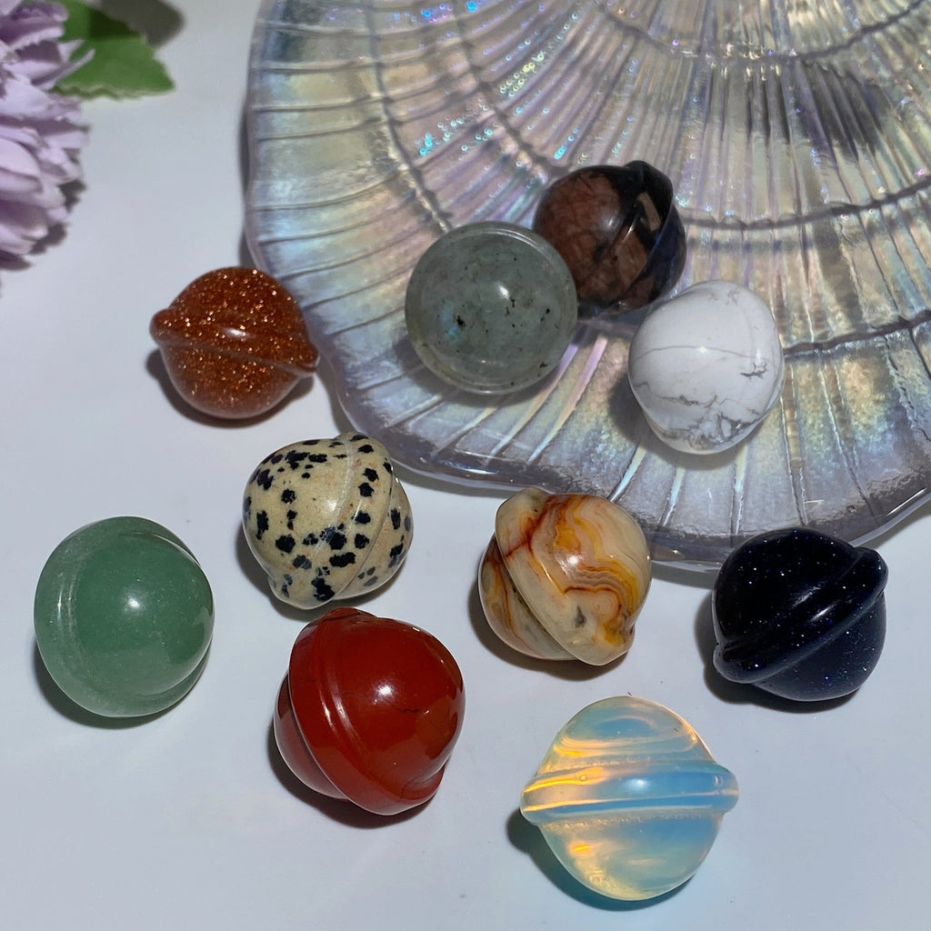 Our 20mm mixed spheres include Labradorite, Crazy Agate, Howlite, Red Que Sera, Blue Sandstone, Red Jasper, Dalmatian, Golden Sandstone, Green Aventurine, and Opalite, each offering unique energetic benefits.