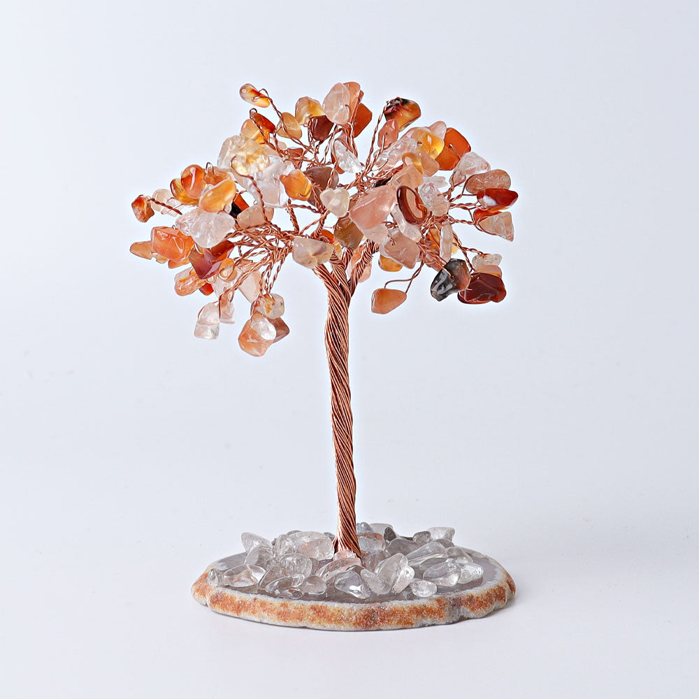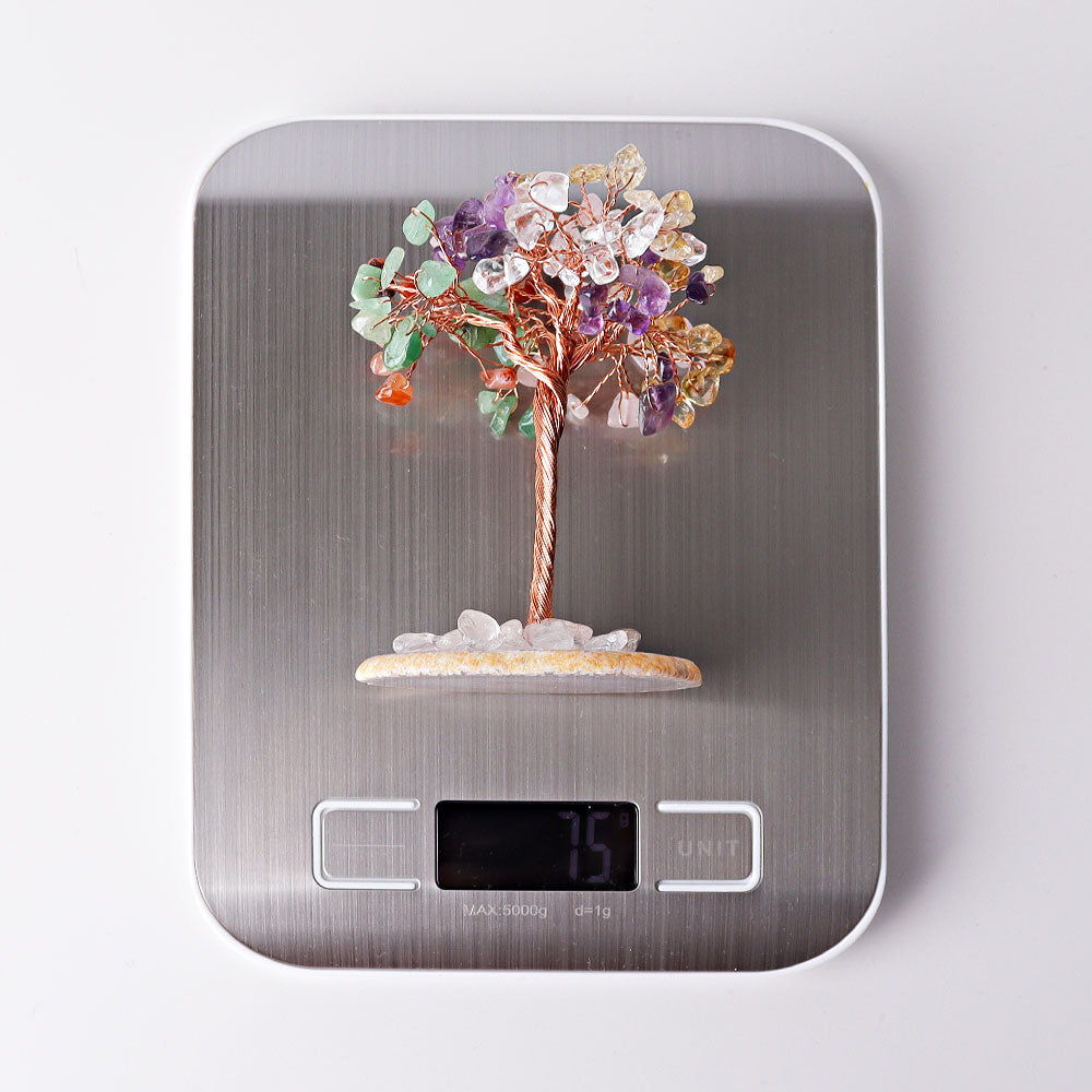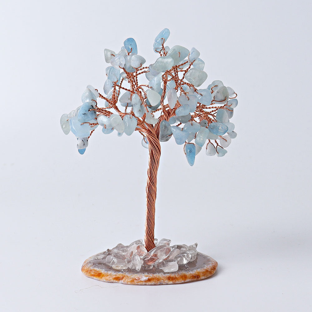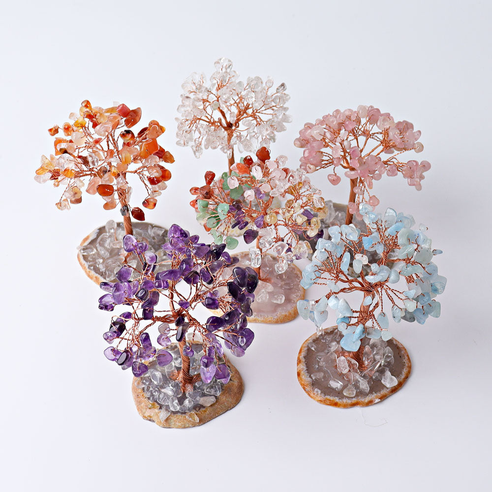 This crystal tree is handcrafted with gemstone chips known for promoting positive energy, chakra balance, and emotional healing. The combination of crystals and agate fosters a harmonious environment and spiritual upliftment.