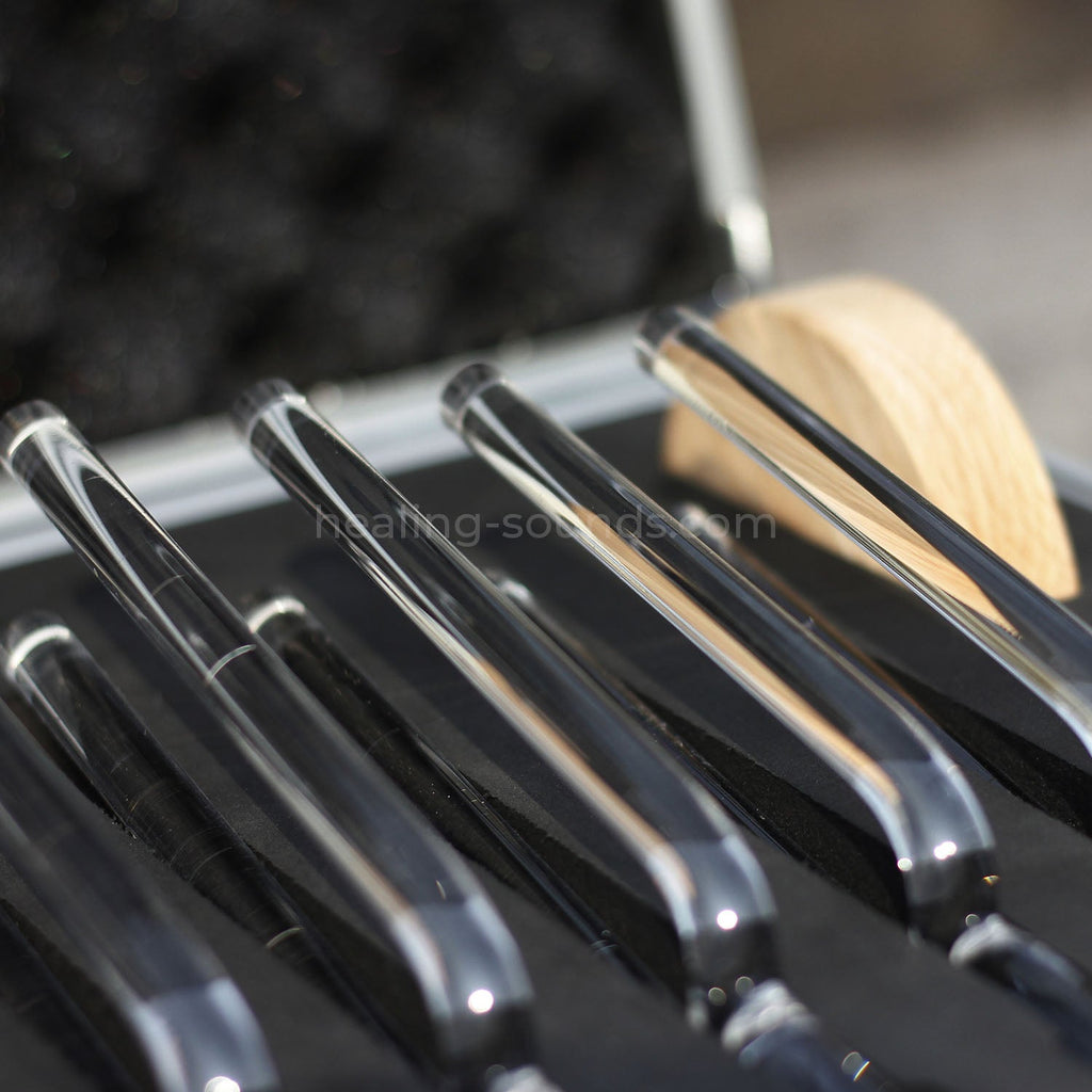 - Bols chantants en cristal – Amplifiez la vibration de la fourchette et créez une résonance harmonieuse.