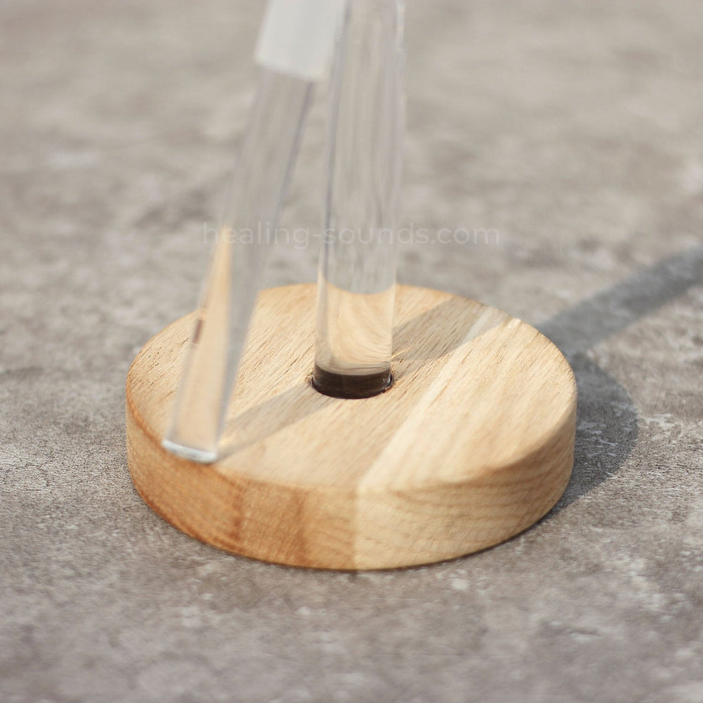 Chaque diapason en cristal est fabriqué à la main sur commande , garantissant un savoir-faire de la plus haute qualité et un accordage précis. Ce procédé artisanal garantit un instrument répondant aux normes les plus strictes en matière de sonothérapie.