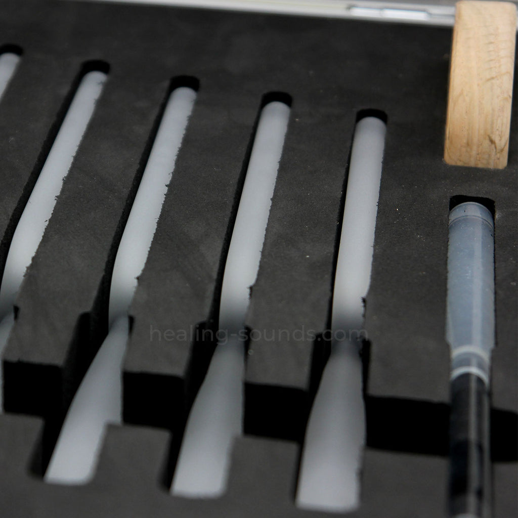 - Un ensemble de 13 pièces élargit vos possibilités, permettant une thérapie de fréquence précise et un travail vibratoire plus profond sur toutes les octaves.