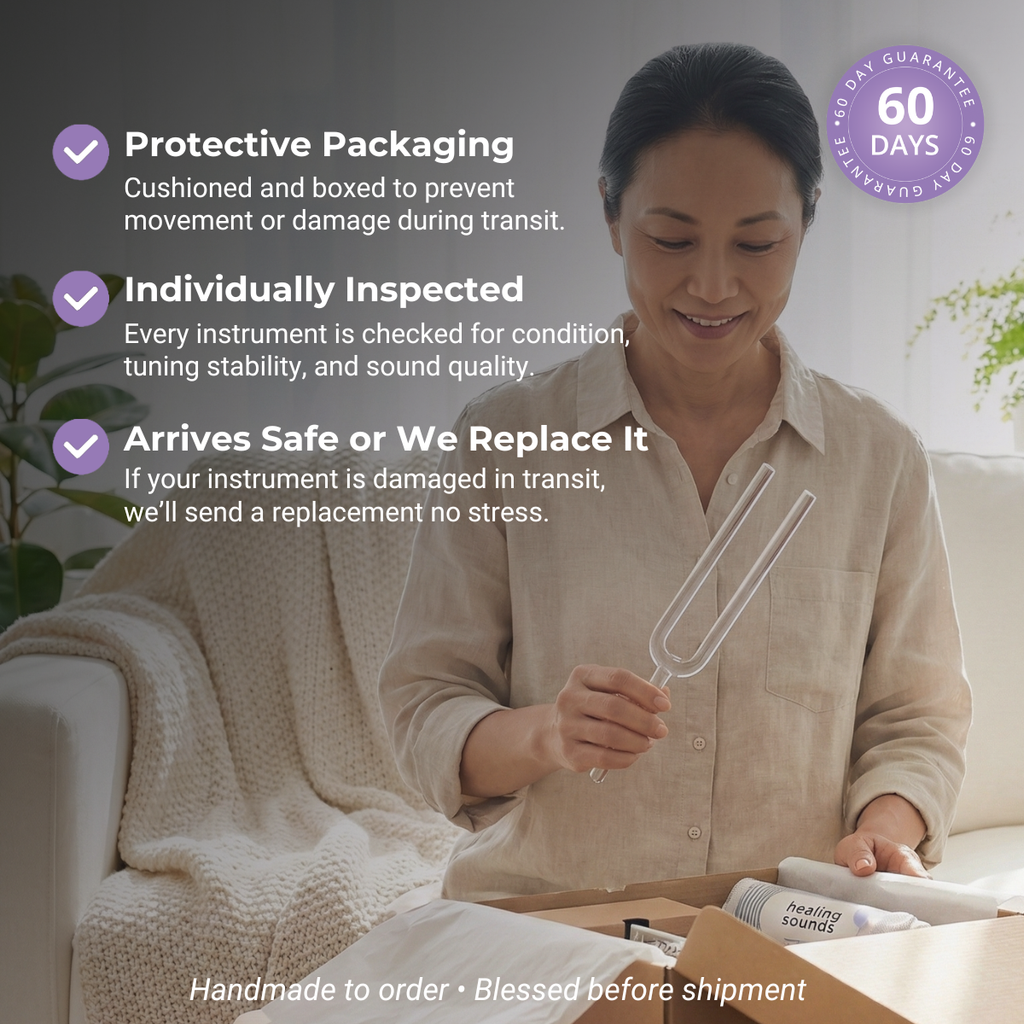 Nous collaborons avec des fabricants professionnels , experts dans la fabrication de diapasons en cristal de haute qualité. Après votre commande, nous produisons rapidement votre diapason de haute qualité et vous l'expédions directement. Détendez-vous en écoutant des mélodies apaisantes sur healing-sounds.com.