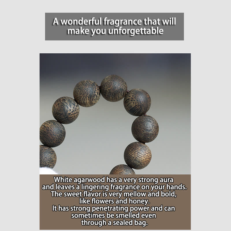 Le bois d'agar blanc Qinan utilisé dans ce bracelet est apprécié pour ses propriétés calmantes et psychoactives. Il contribue à équilibrer le chi , à soulager l'anxiété, à apaiser l'esprit et à invoquer une énergie paisible et puissante, idéale pour la méditation et les pratiques spirituelles.