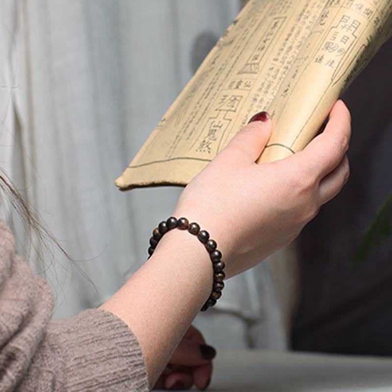 Au-delà de sa beauté, ce bracelet en bois d'agar est un lien tangible avec les traditions spirituelles qui valorisent la pleine conscience et la paix intérieure. Les praticiens tibétains utilisent depuis longtemps des perles de mala en bois d'agar similaires pour favoriser la méditation, tandis que d'autres traditions apprécient sa capacité réputée à dissiper les énergies négatives et à favoriser la clarté mentale.