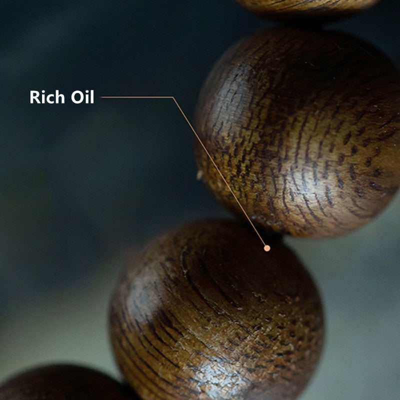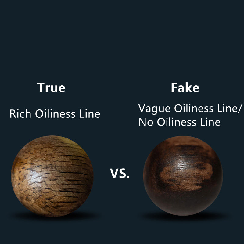 Keep the agarwood away from water and chemicals to preserve its oiliness and aroma. Clean gently with a soft, dry cloth after wear. Store in a sealed bag in a cool place to avoid heat and sunlight exposure.