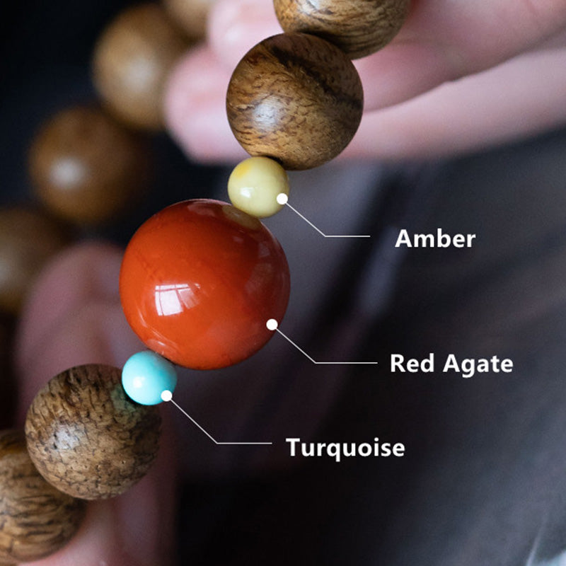 - Materials: Agarwood, Amber, Silver Plated Gold, Red Agate, Turquoise, Small Leaf Red Sandalwood