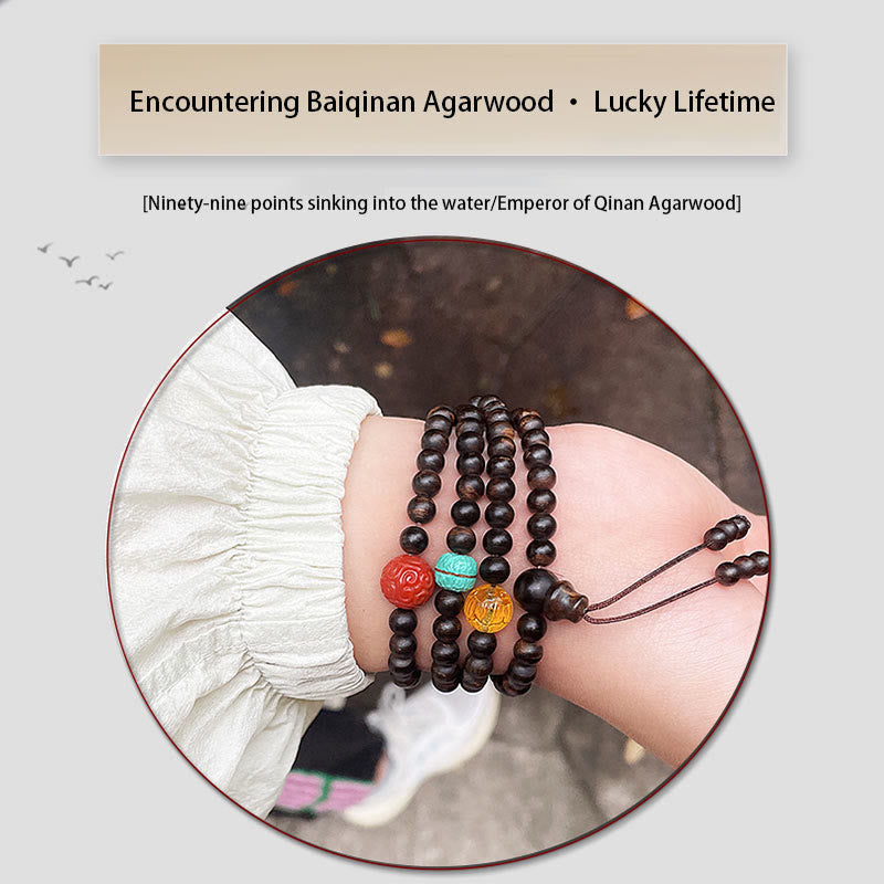 Ce bracelet associe le bois d'agar rare de Bai Qinan à la turquoise, à l'ambre et à l'agate rouge , favorisant force intérieure, équilibre, tranquillité et protection. Il favorise la méditation en favorisant la concentration et soulage l'anxiété, insufflant une énergie apaisante et dynamisante à votre pratique quotidienne.