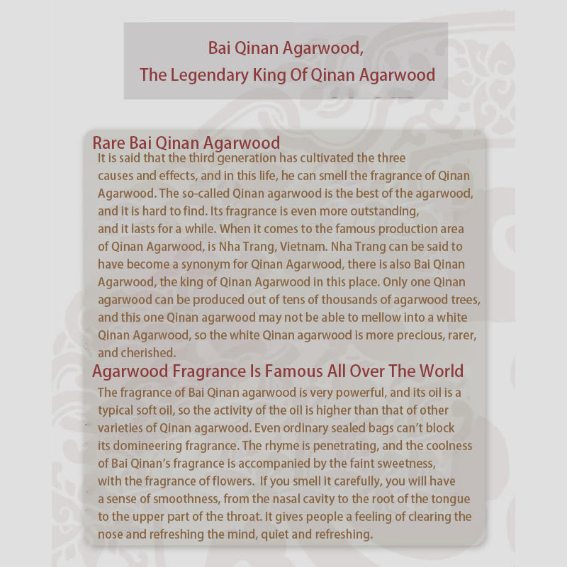 Absolument. Le bois d'agar Bai Qinan utilisé est une variété rare et de haute qualité provenant de Nha Trang, au Vietnam. Chaque pièce est fabriquée à la main avec des matériaux respectueux de l'environnement, garantissant ainsi son authenticité et un approvisionnement durable.