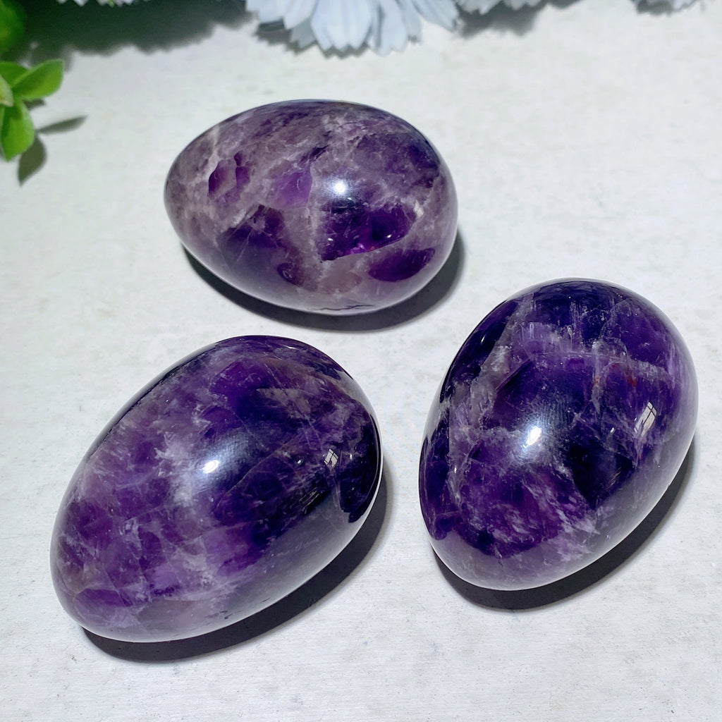 Cet œuf d'améthyste poli mesure environ 2,0 pouces (environ 5,08 cm) , parfait pour le tenir dans votre main pendant la méditation ou comme pièce décorative dans votre espace sacré.