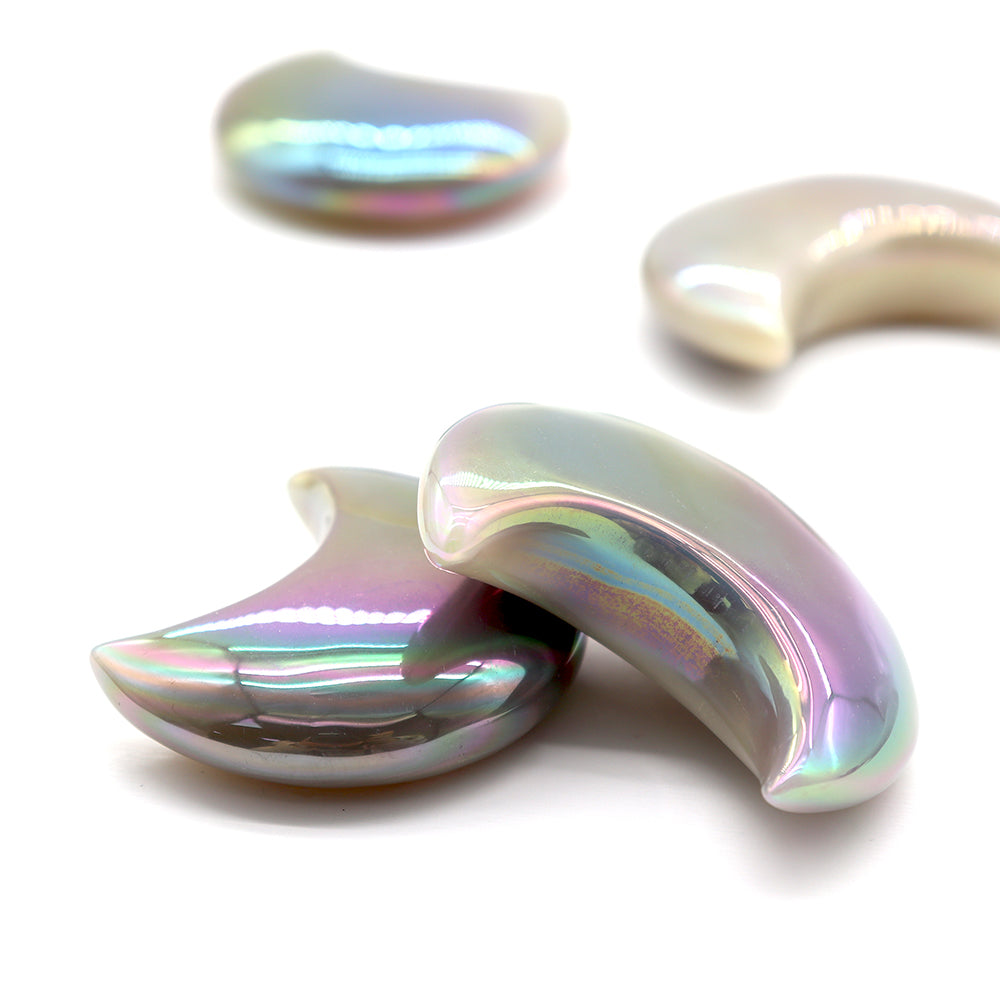 Colors may vary due to screen differences. Each piece has a unique iridescent aura finish with hues of pink, purple, blue, and green, making every crystal uniquely beautiful.