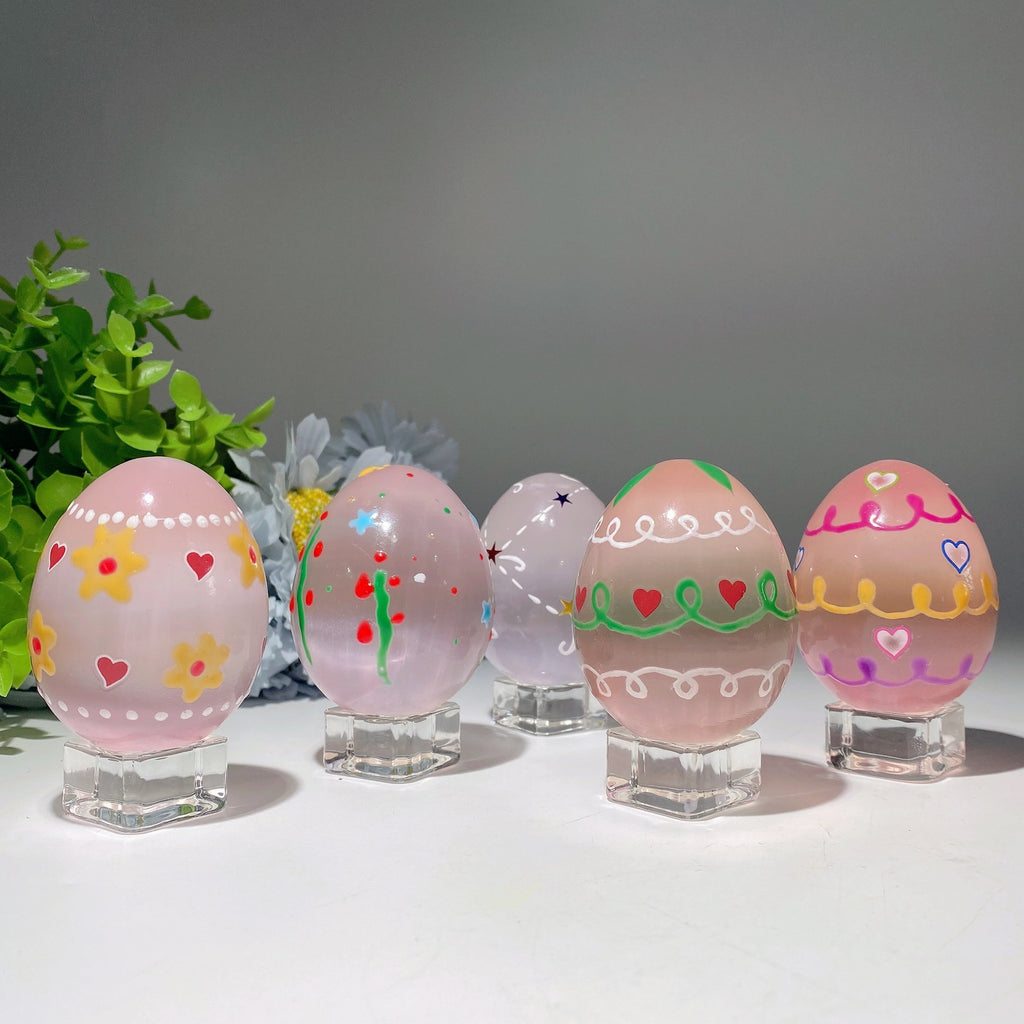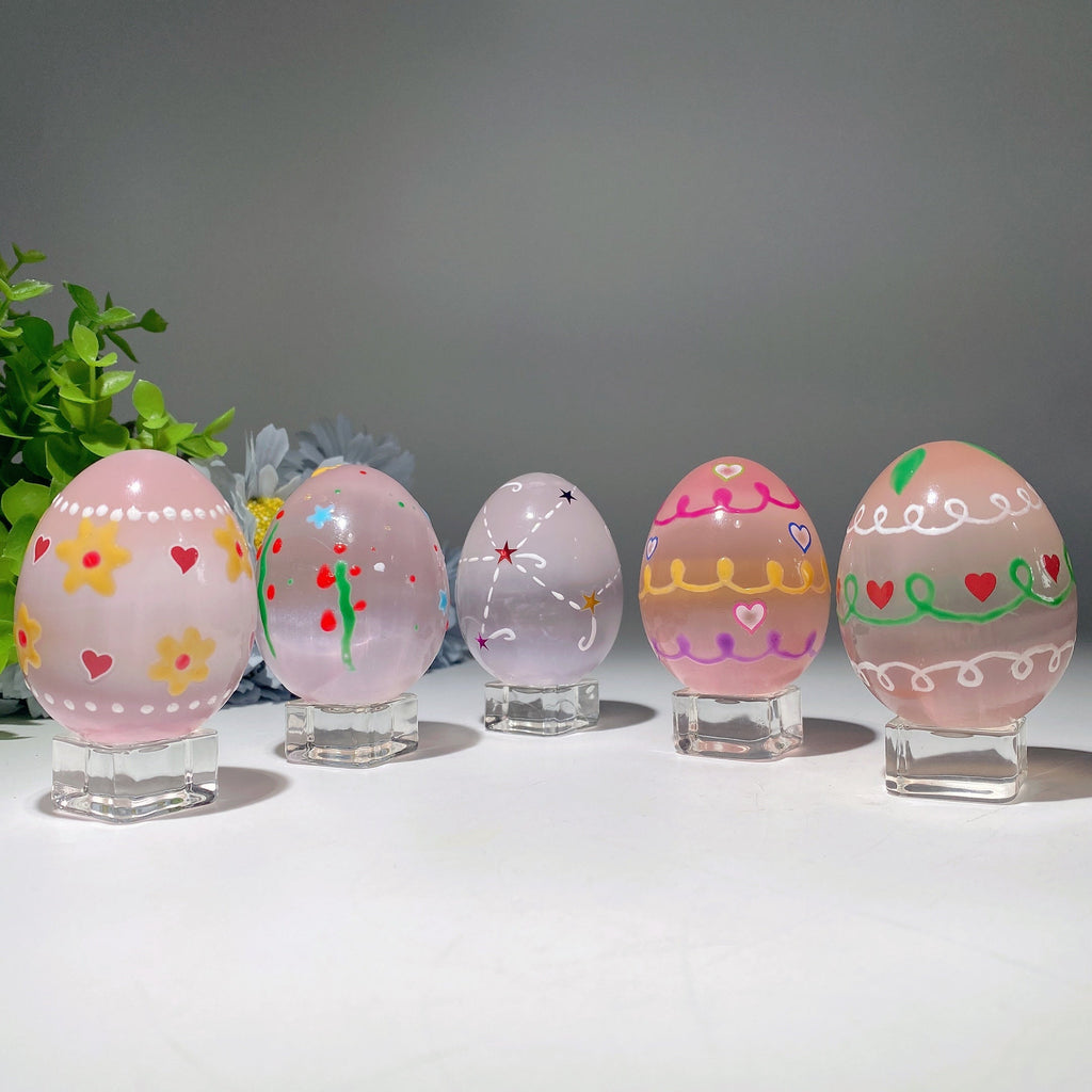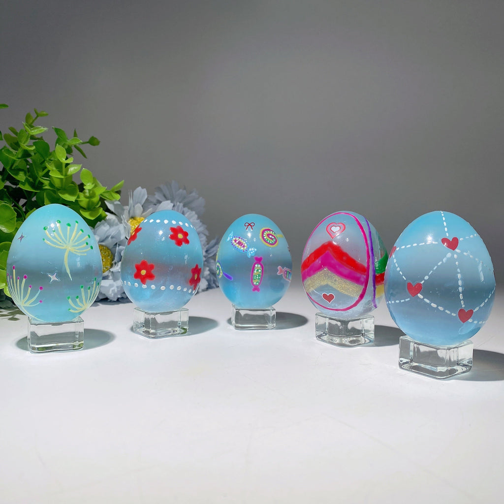 Indeed, every crystal egg features individual hand-painted designs, making each piece one-of-a-kind. Color hues may slightly vary due to natural stone variations and painting artistry.