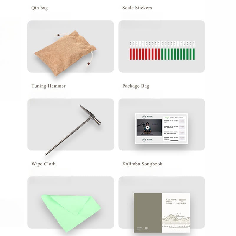Pour accorder, utilisez simplement le marteau fourni pour ajuster délicatement la longueur des lames : les pousser vers l'extérieur abaisse la note, tandis que les pousser vers l'intérieur l'augmente. Cet accordage peut être une pratique de pleine conscience en soi, vous permettant de vous connecter plus profondément à votre instrument.