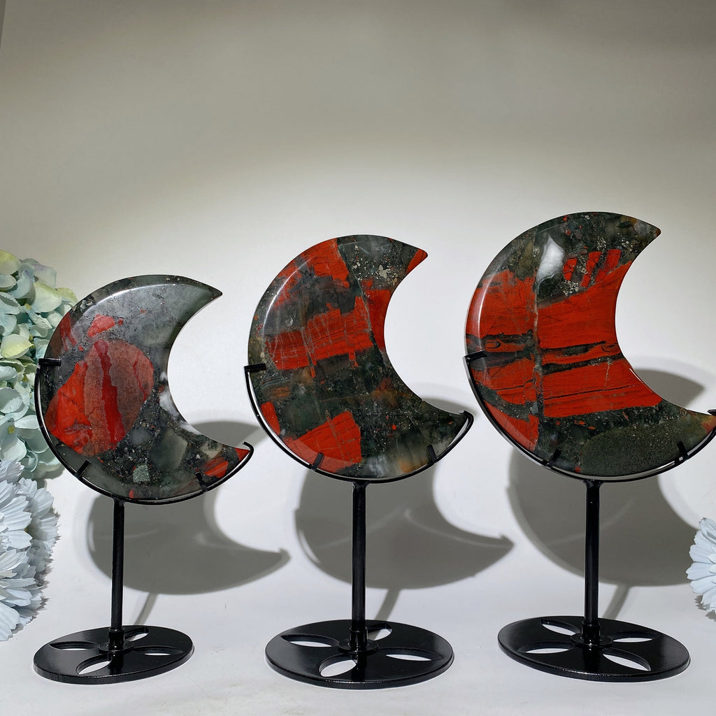 Cette lune en cristal de Pierre de Sang est disponible en tailles allant de 10 à 16 cm (environ 3,94 à 6,3 pouces) de longueur. Il existe des variantes de 10 à 11 cm, 12 à 13 cm et 13,5 à 15 cm, chacune étant accompagnée d'un support métallique noir robuste de 8 cm (environ 3,15 pouces) pour une meilleure stabilité.