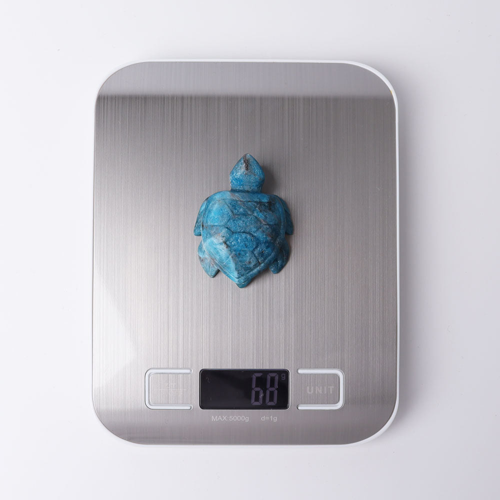 This Blue Apatite carving symbolizes prosperity, protection, and spiritual energy balance. Its turtle shape also emphasizes grounding and longevity.