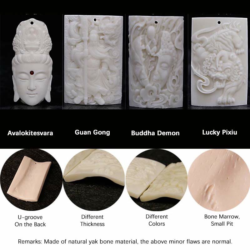 Embarquez pour un voyage vers l'illumination avec notre authentique bracelet mala de 108 perles en graines de bodhi, orné de gardiens sacrés. Ce mala, méticuleusement fabriqué à la main, allie la puissance du symbolisme bouddhiste traditionnel à l'énergie naturelle des véritables graines de bodhi, appelées « graines de l'éveil ». Chaque bracelet arbore le gardien spirituel de votre choix : Avalokitesvara, Lucky Pixiu, Guan Gong ou Bouddha, sculpté dans de l'os de yak issu de sources éthiques, créant ainsi un puissant outil de méditation et un ornement spirituel.