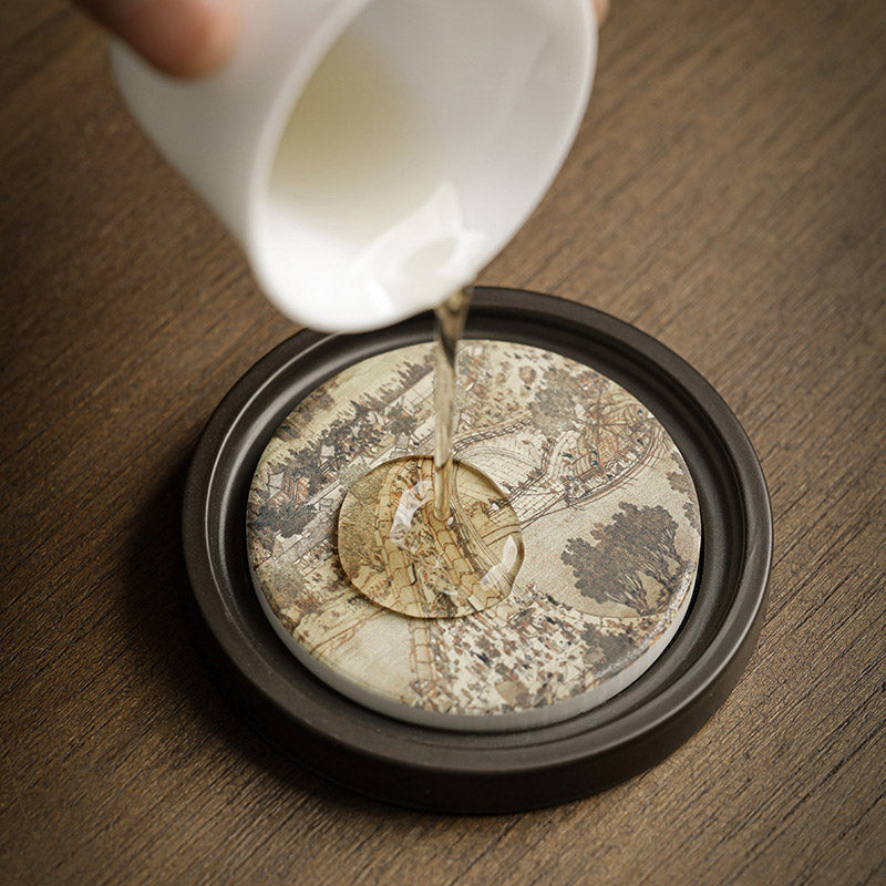 Ce dessous de verre en céramique imprègne votre rituel du thé de pleine conscience et de tranquillité, inspiré des motifs de la nature et de la sagesse du Sutra du Cœur, créant une ambiance zen apaisante pour la méditation et la réflexion quotidiennes.