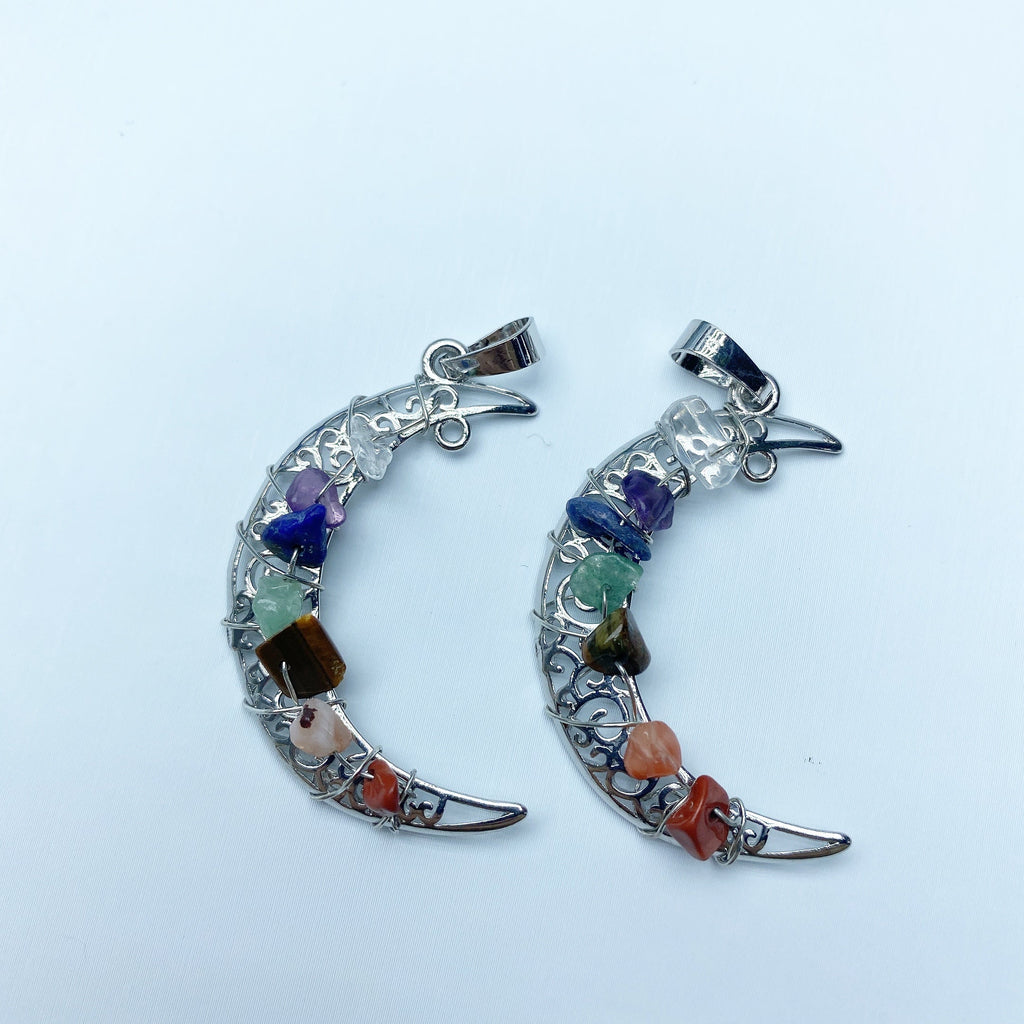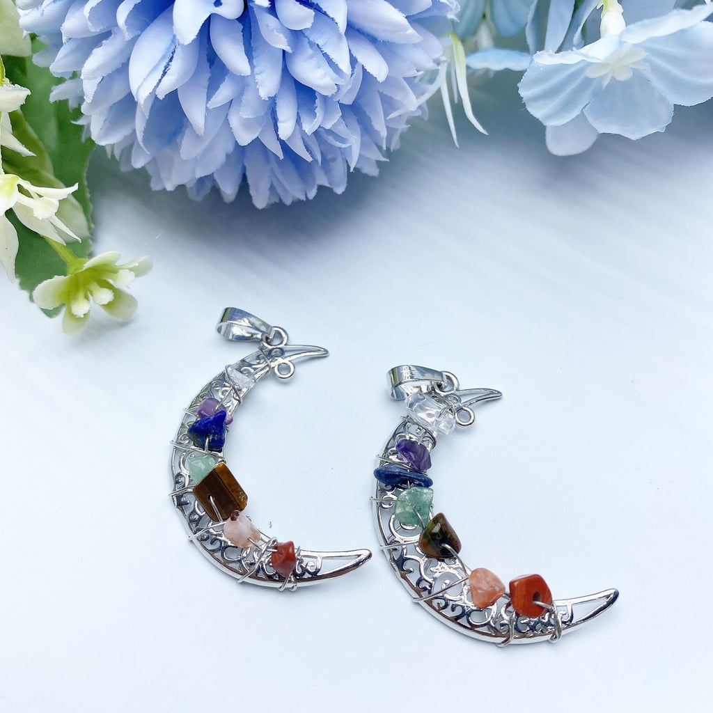 This 1.5 inch Chakra Moon Pendant combines the energy of various chakra stones to support spiritual balance, healing, and protection. It helps align your energies and enhance meditation practices for a harmonious spirit.
