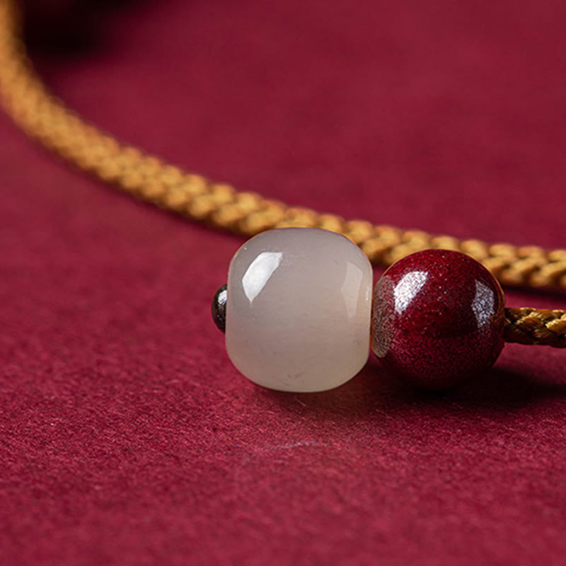 - Matériau : perles de cinabre naturelles, éléments en jade blanc et corde de qualité supérieure