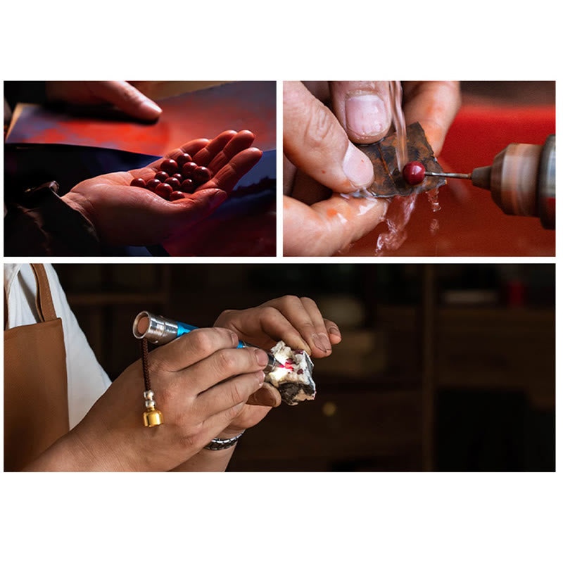 To keep your cinnabar bracelet vibrant and energetically potent, remove it before sleeping or washing. Clean gently with a soft, dry cloth after wear to preserve its beauty and spiritual qualities.