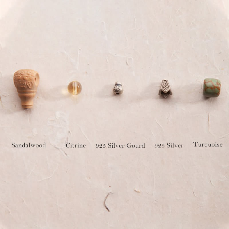 - Matériaux : Citrine naturelle, argent sterling 925, turquoise, bois de santal
