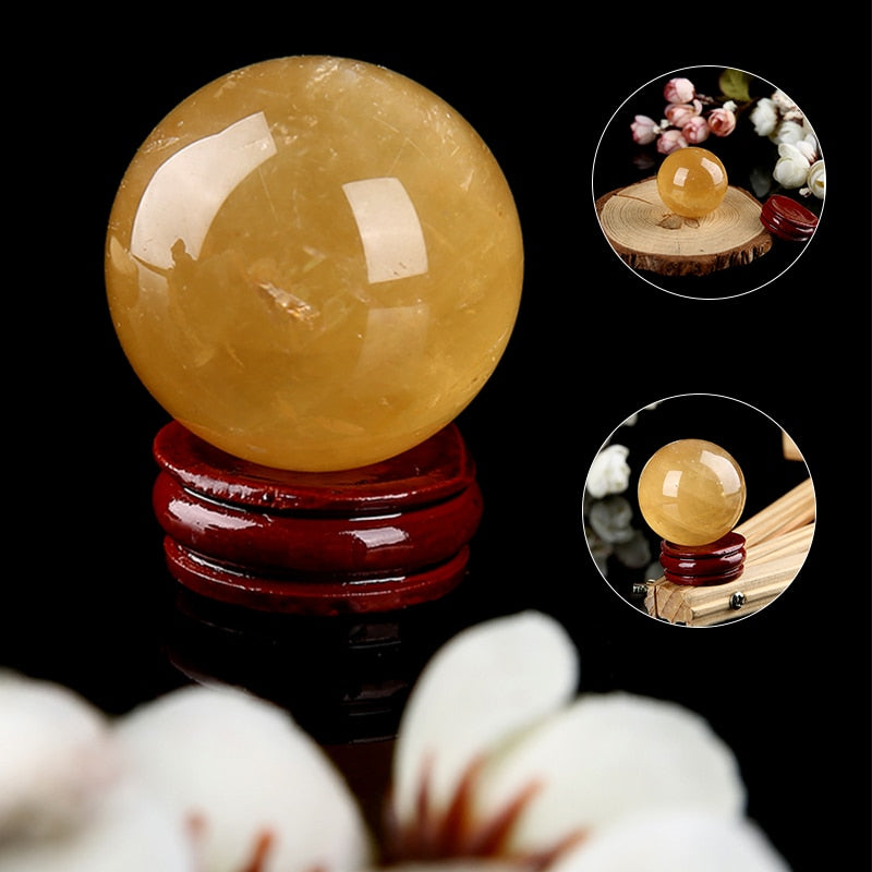Contenu de l'emballage : 1 boule de cristal de citrine, 1 support en bois