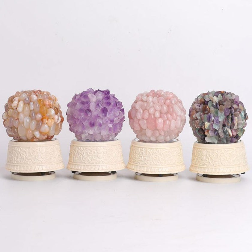 La Boîte à Musique en Cristal offre un mélange de bienfaits spirituels : l'améthyste apaise l'énergie, le quartz rose favorise l'amour et l'harmonie, la fluorite favorise la clarté et l'agate fleur favorise l'ancrage. Elle crée une atmosphère paisible, propice à la méditation et à la relaxation.
