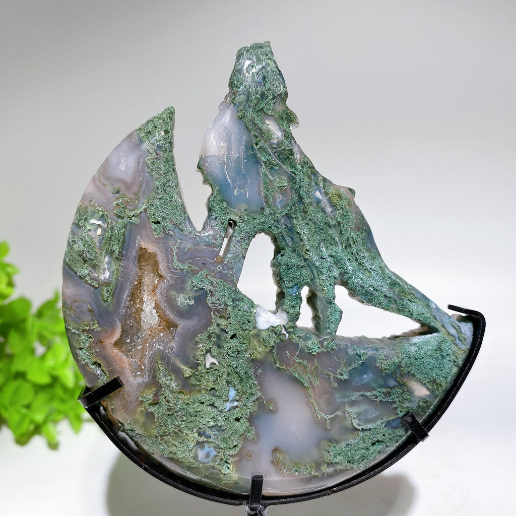 Absolutely! This beautifully carved wolf on a crescent moon evokes the wolf’s intuitive energy, making it ideal for meditation and spiritual rituals. Place it in your healing space to enhance calmness, insight, and connection to animal totems.