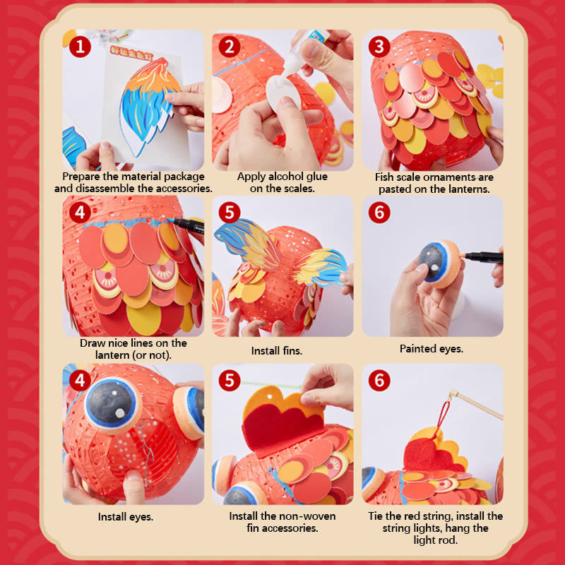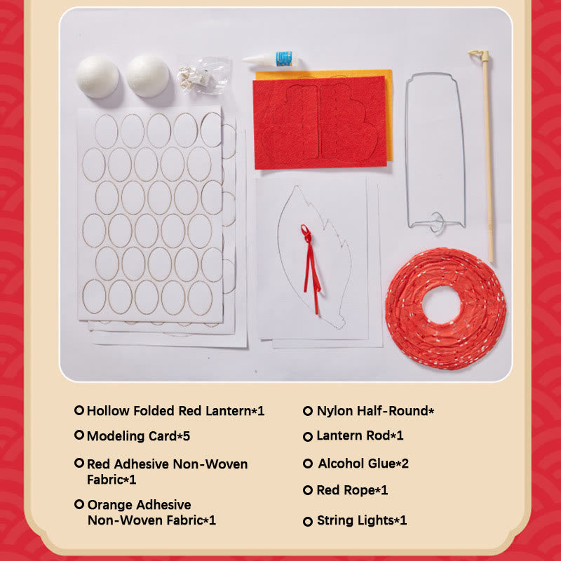 - Kit complet : comprend une lanterne creuse pliée, des cartes de modelage, des tissus adhésifs, de la colle, une corde rouge et tous les composants nécessaires