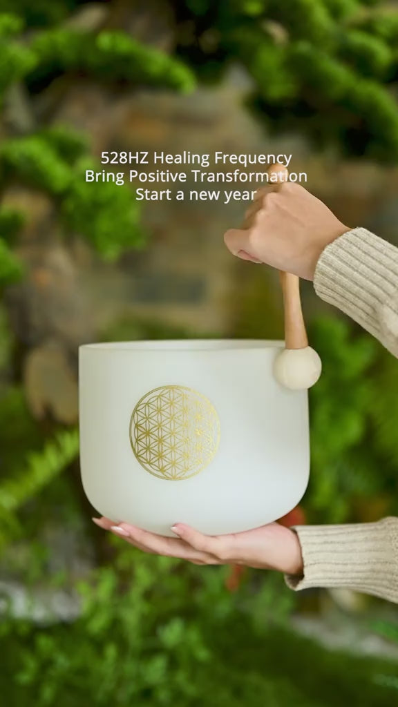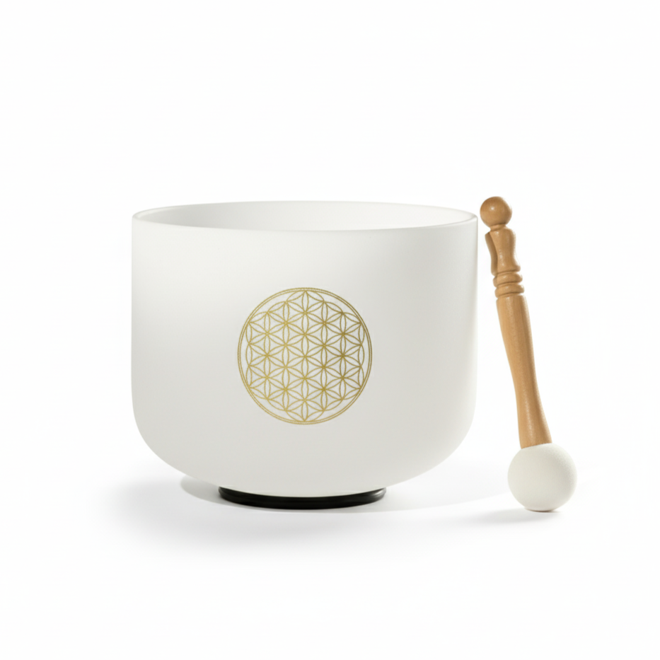 Bol en cristal givré Fleur de vie 528 Hz Note C Do aigu