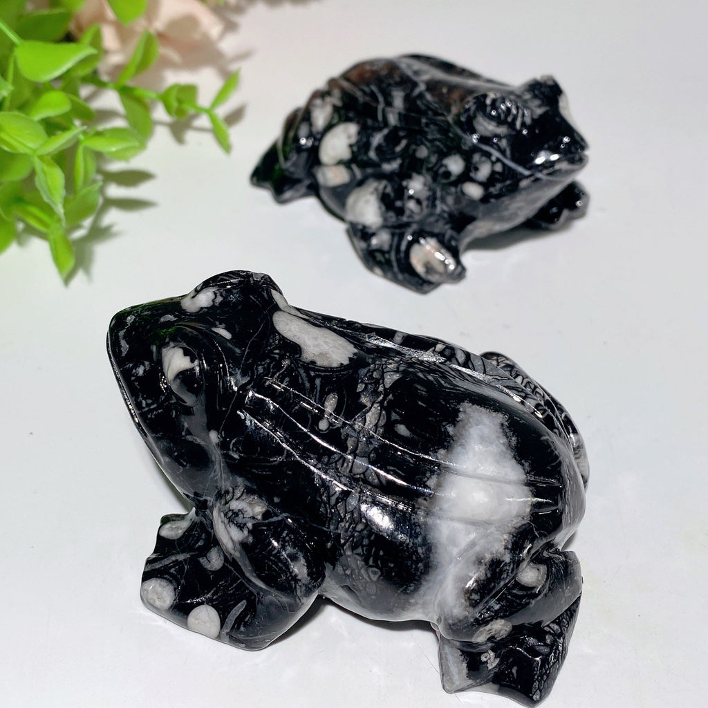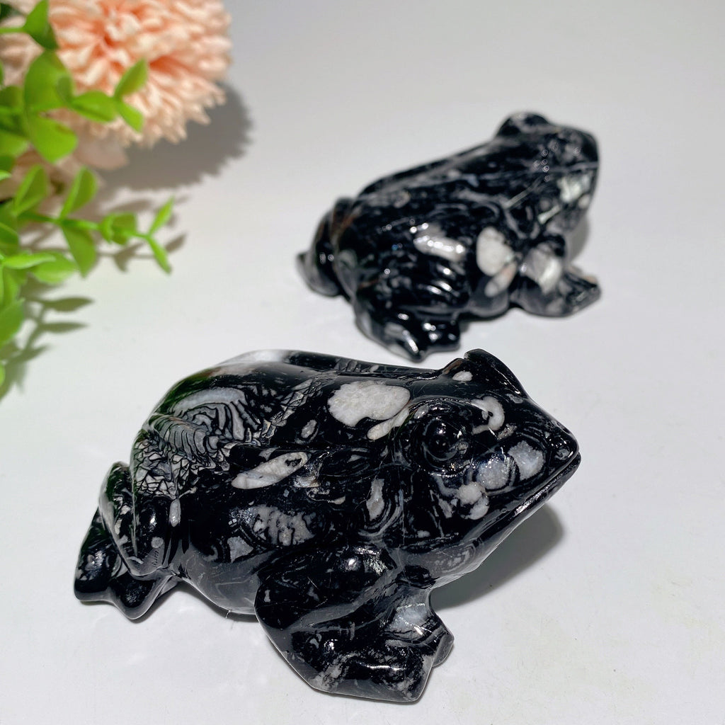 The fossil jasper frog figurine symbolizes renewal and healing energy. It helps promote emotional balance and spiritual growth, making it a perfect addition to your meditation or healing space.