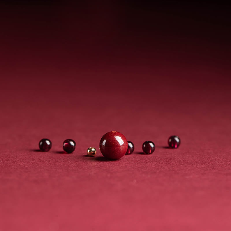 Le cinabre , traditionnellement utilisé dans les chapelets bouddhistes, favorise la concentration et la clarté mentale. Dans les pratiques spirituelles, le cinabre est apprécié pour sa capacité à apaiser l'esprit et à repousser les influences négatives, ce qui en fait un compagnon idéal pour la méditation et la pratique spirituelle quotidienne.