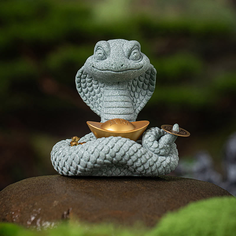 Notre collection comprend également des duos représentant le Serpent Lingot d'Or et le Serpent de Salutation, offrant des énergies complémentaires pour renforcer l'harmonie et l'équilibre de votre intérieur. Ils peuvent être exposés ensemble ou séparément pour diffuser leur influence positive dans votre espace.