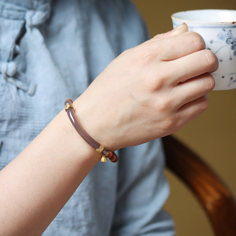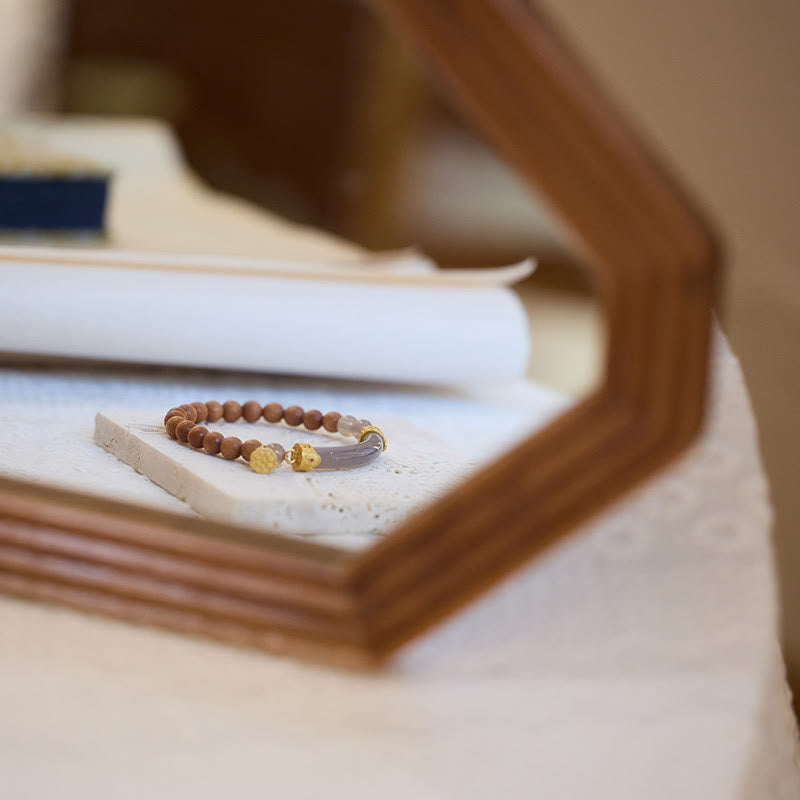- Materials: Sandalwood, Gray Agate, Chalcedony, 925 Sterling Silver Gold Plated