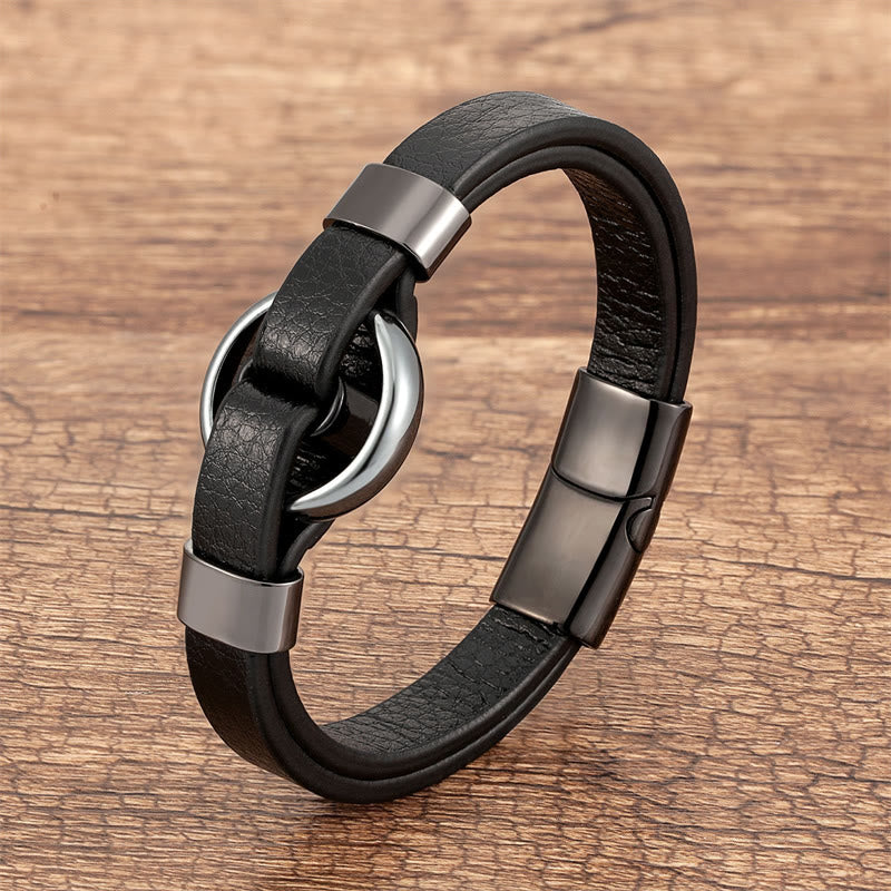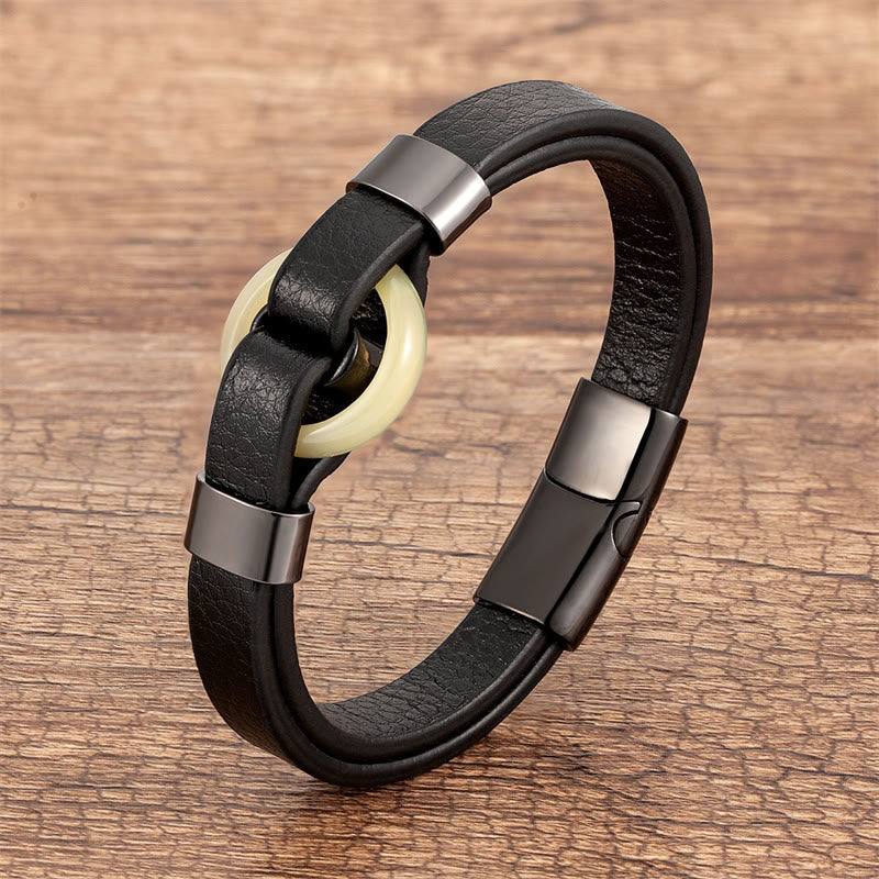 Ce bracelet présente des détails soigneusement travaillés alliant esthétique et praticité. La pierre centrale lisse et polie épouse parfaitement votre poignet, tandis que le bracelet en cuir souple offre un confort optimal tout au long de la journée. La fermeture à boucle magnétique allie sécurité et facilité : il suffit de la clipser pour une connexion instantanée.