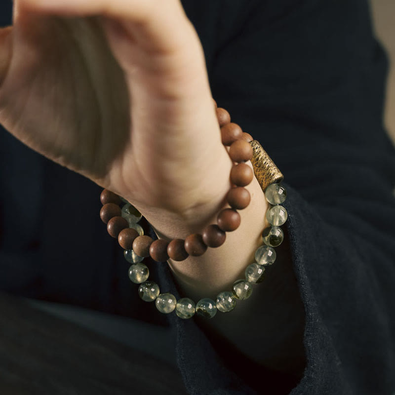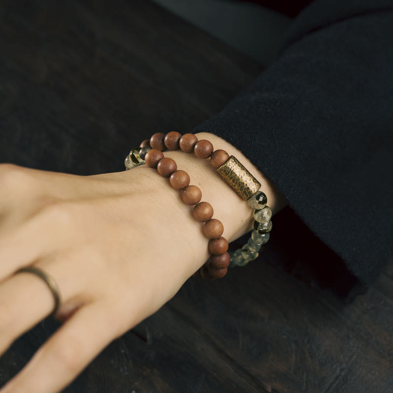 Le bracelet spirituel en quartz rutile vert et bois de santal crée une puissante fusion énergétique, alliant sagesse ancestrale et pratiques spirituelles modernes. Ce bracelet spirituel exquis, fruit d'un savoir-faire artisanal, canalise l'essence purifiante du bois de santal avec l'énergie dynamique du quartz rutile vert. Conçu pour ceux qui recherchent la purification énergétique et le renouveau spirituel, ce bracelet est à la fois une magnifique parure et un puissant outil pour formuler des intentions.