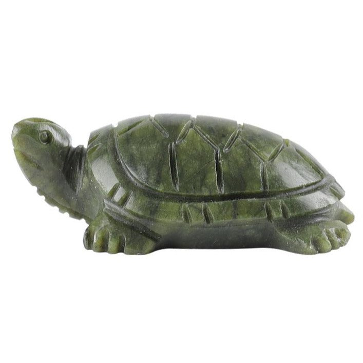 This green serpentine turtle carving symbolizes longevity, prosperity, and protection. It is believed to attract positive energy and harmony to any space, making it a cherished Feng Shui element.