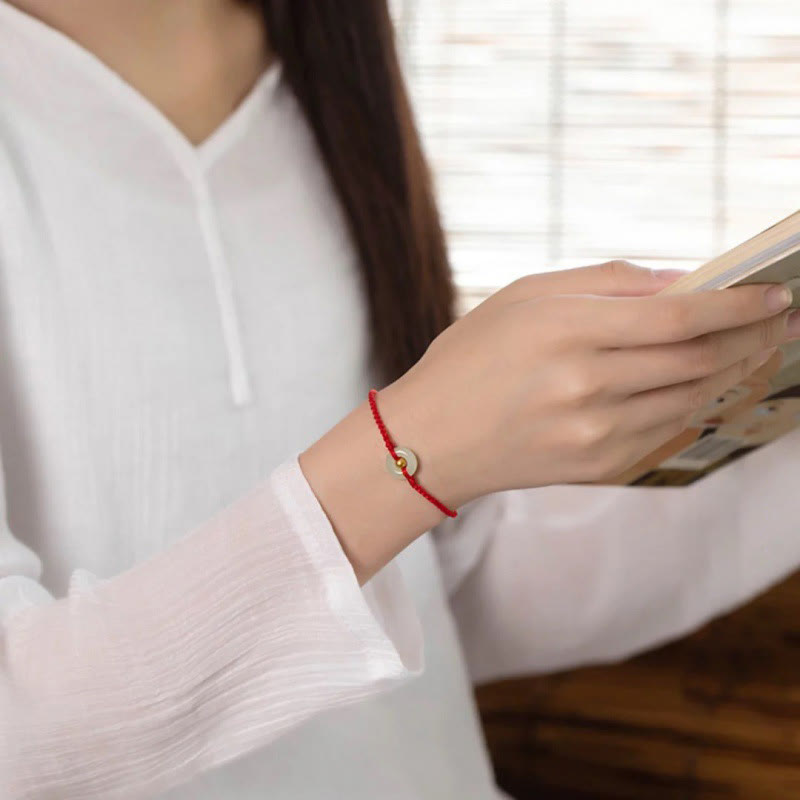 Chaque bracelet est conçu avec soin à partir d'une corde tressée de qualité supérieure et orné d'or 999 véritable, symbole de richesse et de chance. La boucle centrale, symbole de paix, crée un puissant flux d'énergie, faisant de ce bracelet bien plus qu'un simple bijou : c'est un talisman précieux pour attirer les fruits de vos efforts.