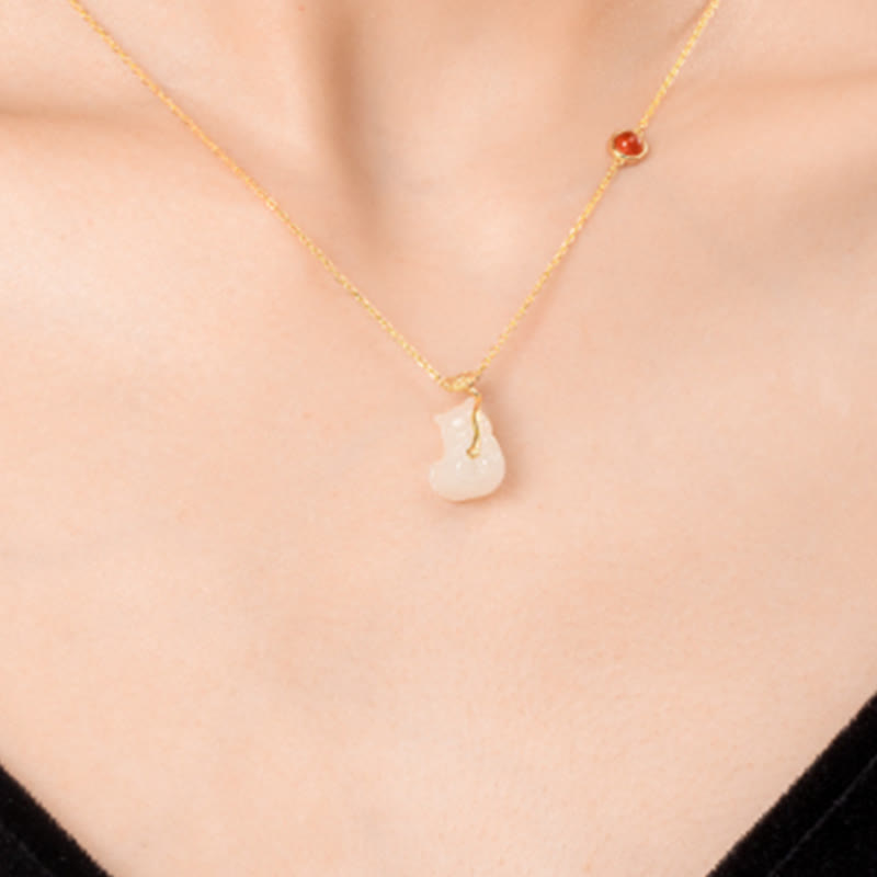 Le motif du chat Ruyi, mis en avant dans cet ensemble, revêt une profonde symbolique dans le folklore traditionnel. « Ruyi » signifie « comme tu veux » – un puissant outil pour manifester ses désirs. Associé à la figure du chat, symbole de chance et de protection contre les énergies négatives, ce bijou de jade protecteur est doublement puissant.