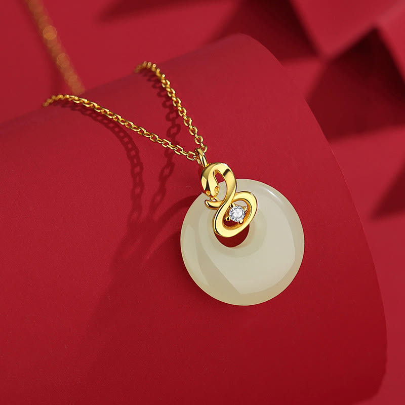 - Pendant Size: A Snake Jade Peace Buckle Pendant 0.79 * 0.63 inches (approx. 20 * 16 mm)