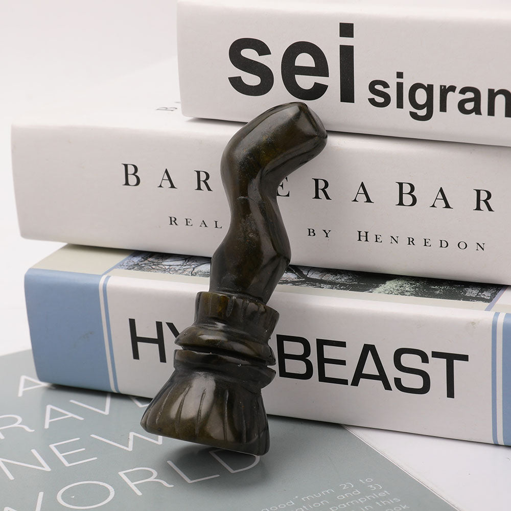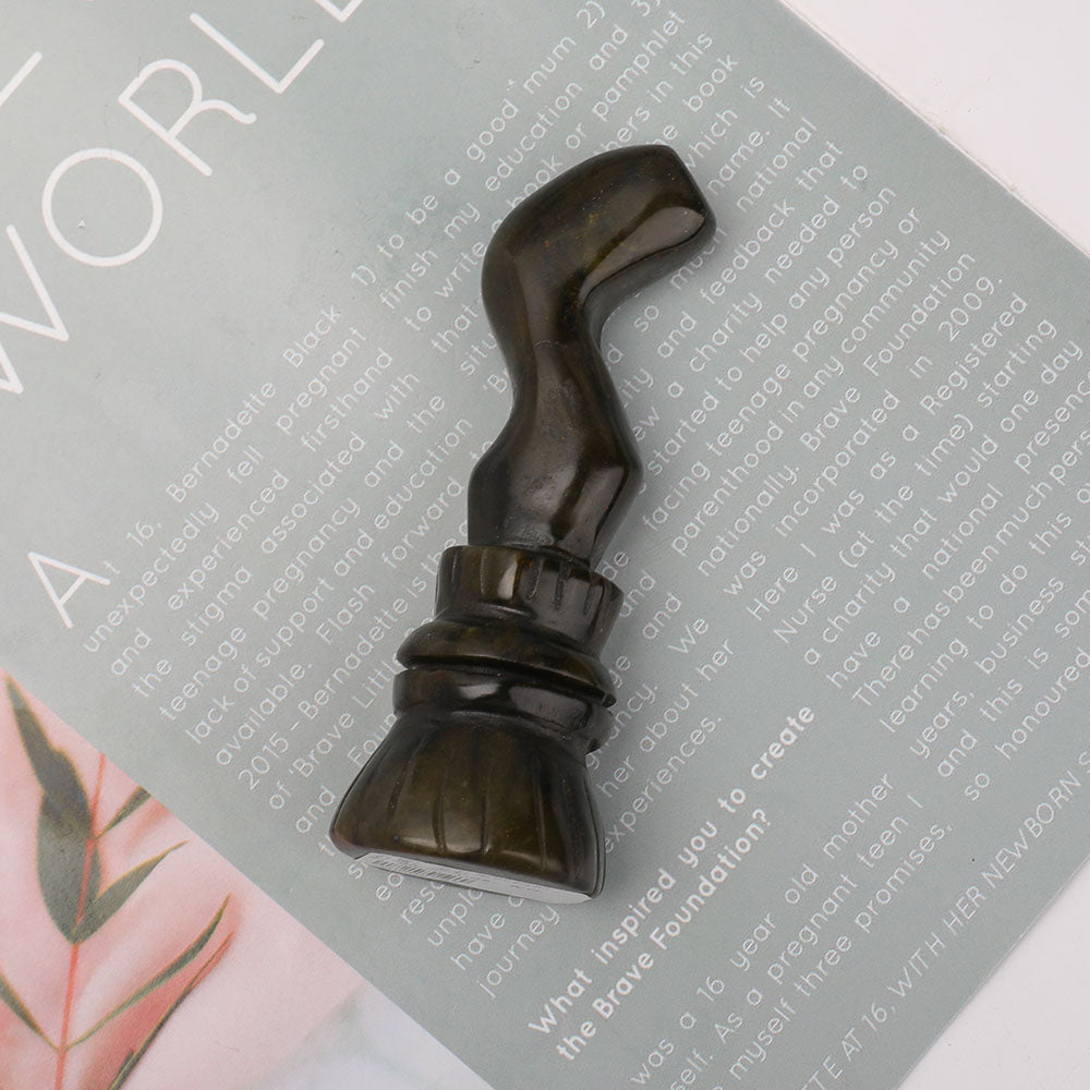 This jade carving harnesses the traditional spiritual properties of jade, including protection and wisdom. Its magic broom shape adds a unique mystical energy, perfect for ritual or meditation practices.
