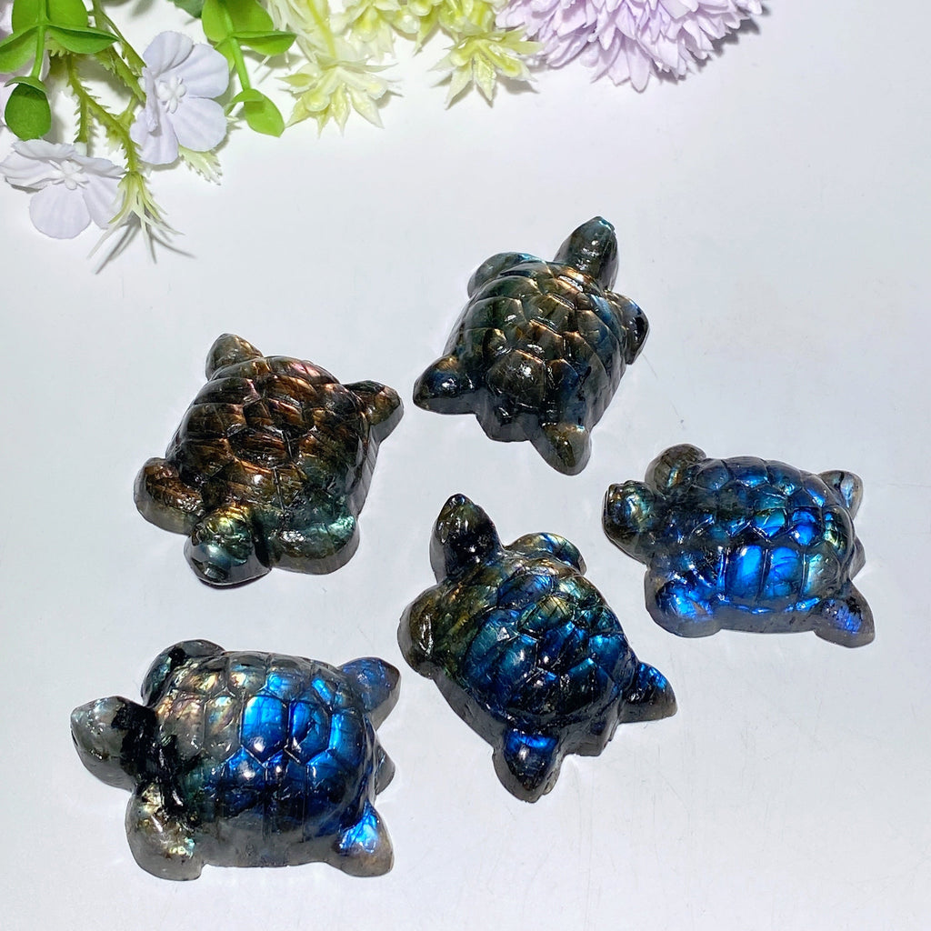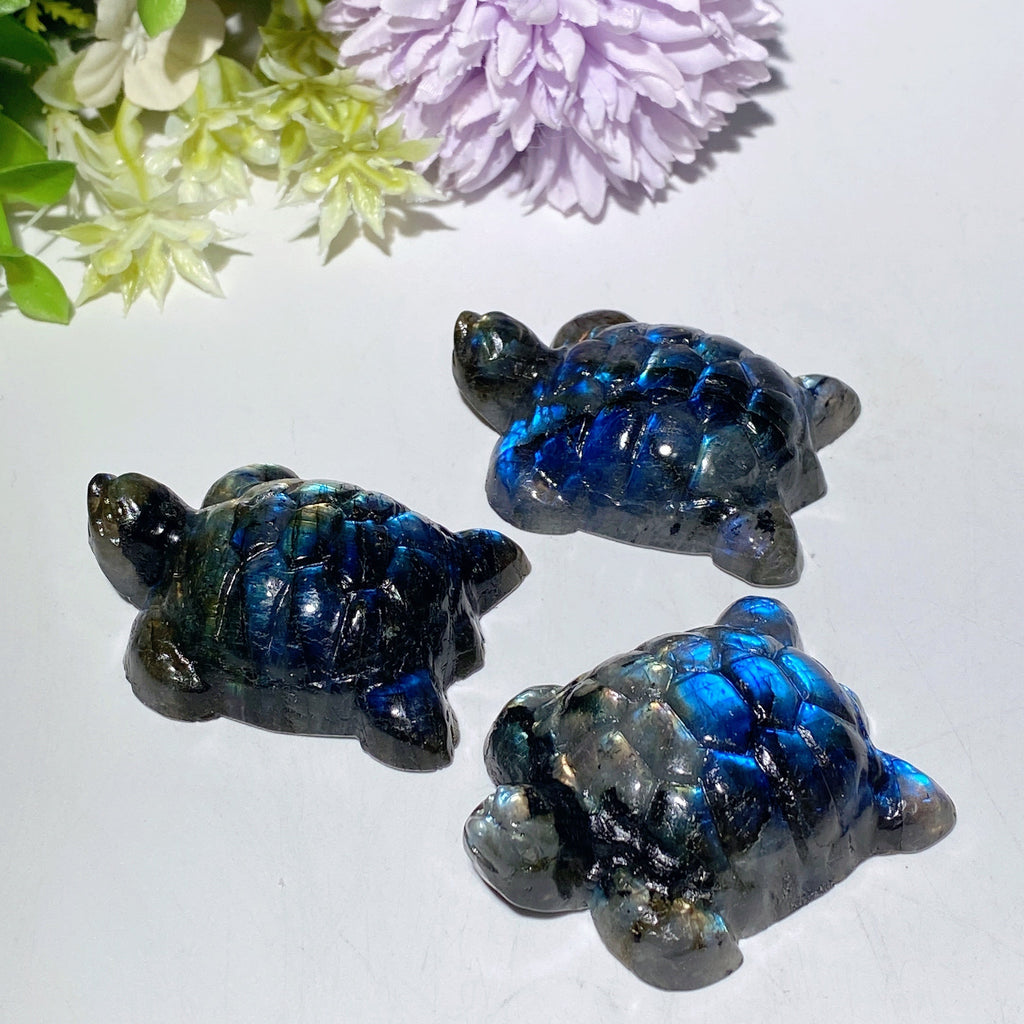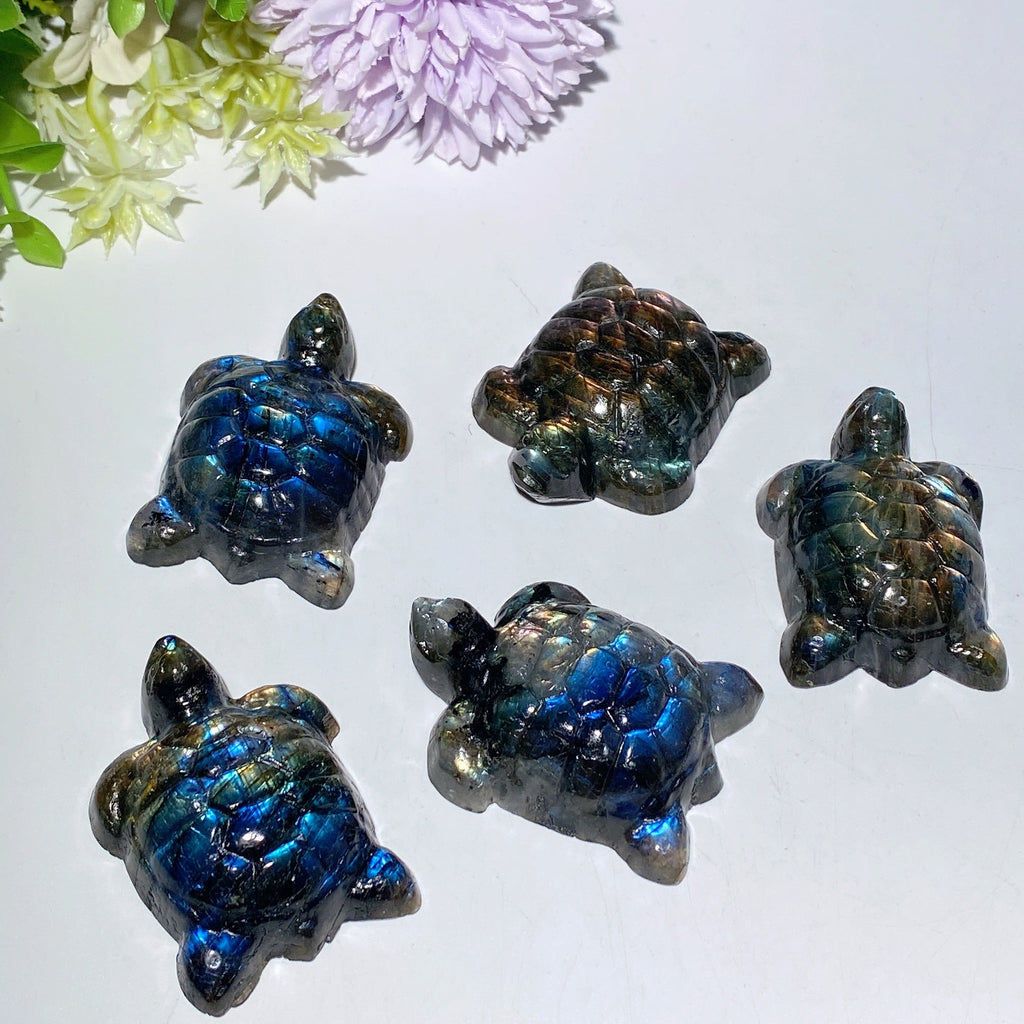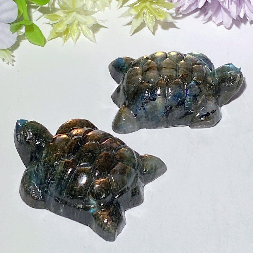 The labradorite turtle figurine carries powerful healing properties, including enhancing intuition, protecting against negativity, and promoting prosperity and positive energy. This makes it a wonderful addition to your spiritual space.