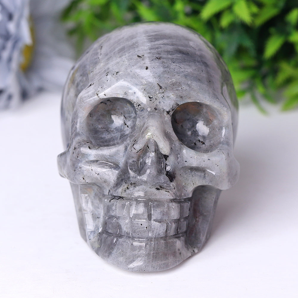 These labradorite crystal skulls are known for enhancing psychic abilities and protecting against negative energies. Their energy supports meditation, chakra balancing, and mystical spiritual growth.