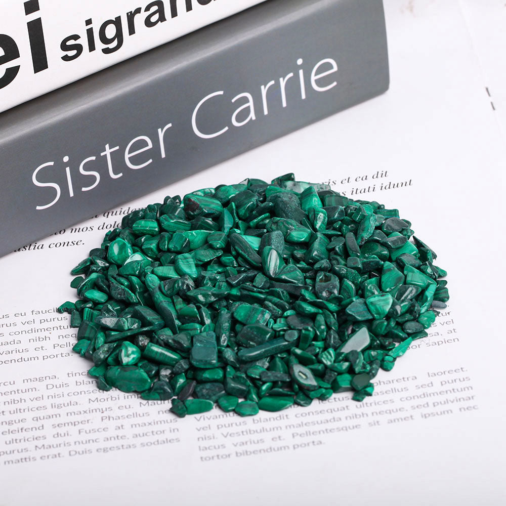 Chaque éclat de malachite poli mesure entre 5 et 7 mm (environ 0,20 à 0,28 pouce), ce qui les rend parfaits pour une utilisation dans des grilles de cristal, la décoration ou les pratiques de méditation.