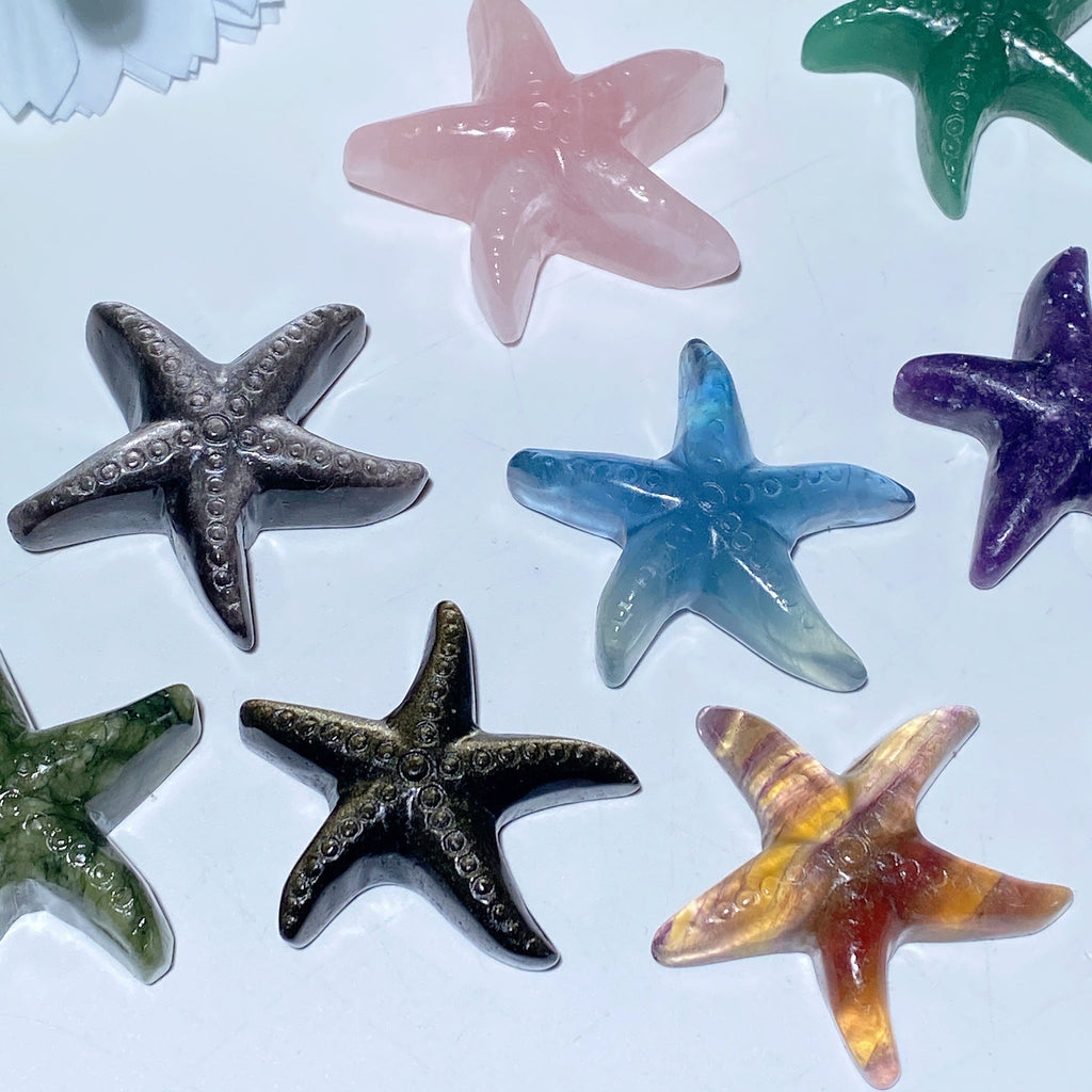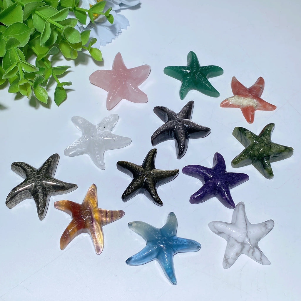 - Hand-carved mixed crystal starfish figurines