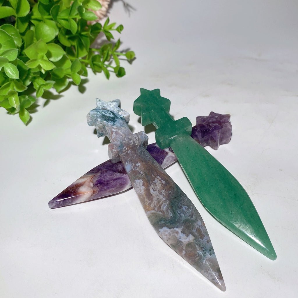 La forme distinctive de l'épée aide à canaliser et à diriger les propriétés naturelles de chaque variété de cristal, ce qui rend ces sculptures particulièrement puissantes pour les praticiens spirituels à la recherche d'outils alliant beauté et fonctionnalité métaphysique.