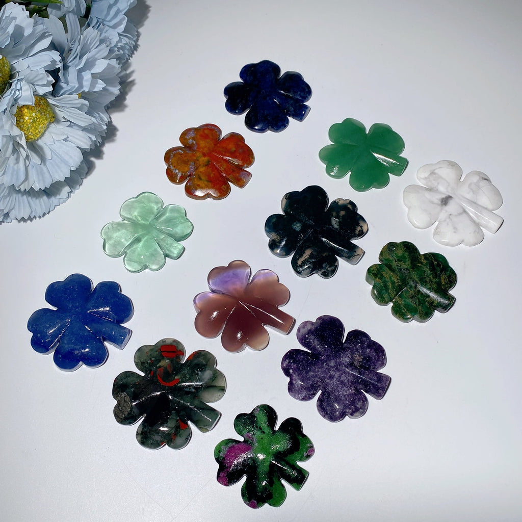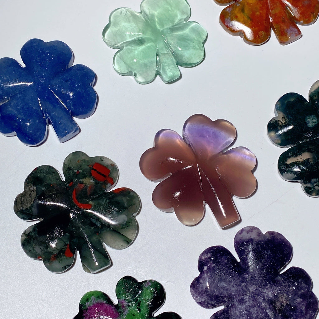 Ces figurines de trèfles à quatre feuilles, sculptées dans des cristaux variés, sont censées apporter chance, énergie curative et équilibre. Chaque variante de cristal possède des propriétés énergétiques uniques pour améliorer votre pratique spirituelle ou votre énergie intérieure.